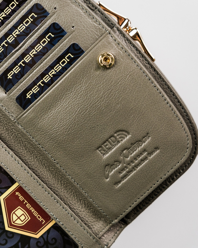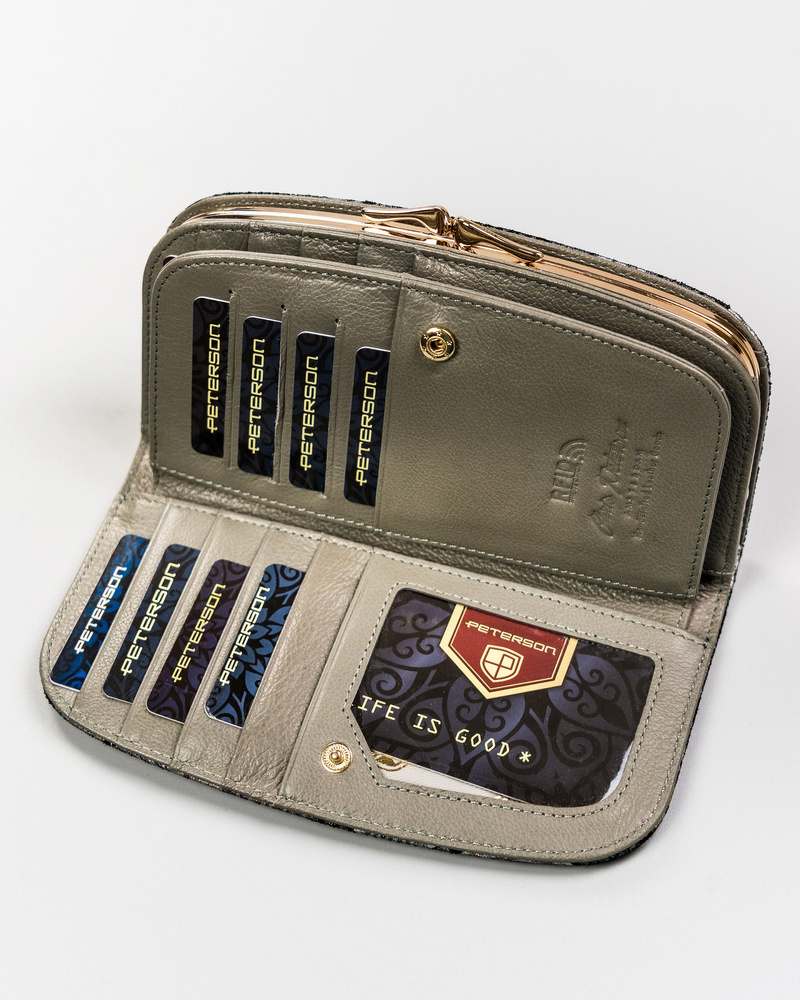 Skórzany portfel damski zdobiony holograficznymi motylami — Peterson