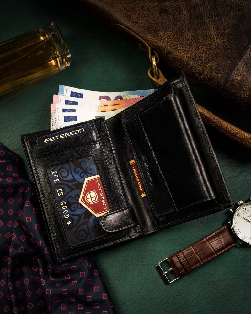 Skórzany portfel męski bez zapięcia zewnętrznego - PetersonSkórzany portfel męski bez zapięcia zewnętrznego – Peterson