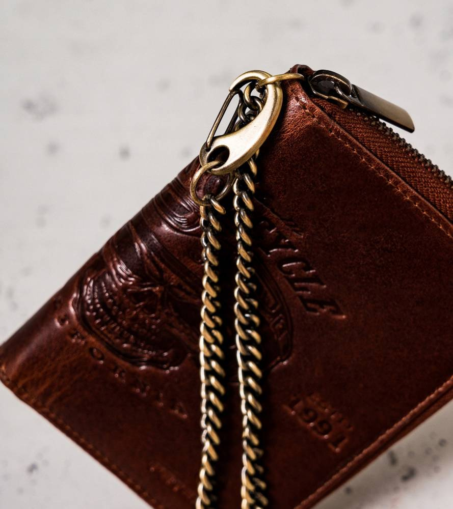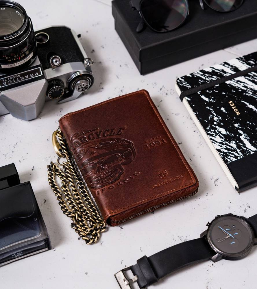 - Długi łańcuch | Portfel zawieszony jest na długim i solidnym łańcuszku, dzięki któremu go nie zgubisz! Przydatne przede wszystkim podczas jazdy motocyklem!