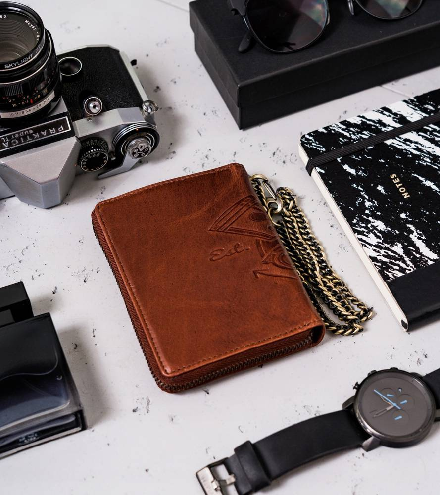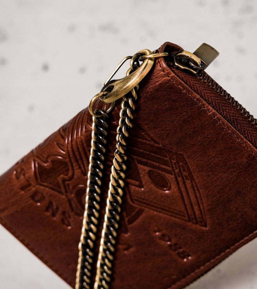 - Długi łańcuch | Portfel zawieszony jest na długim i solidnym łańcuszku, dzięki któremu go nie zgubisz! Przydatne przede wszystkim podczas jazdy motocyklem!