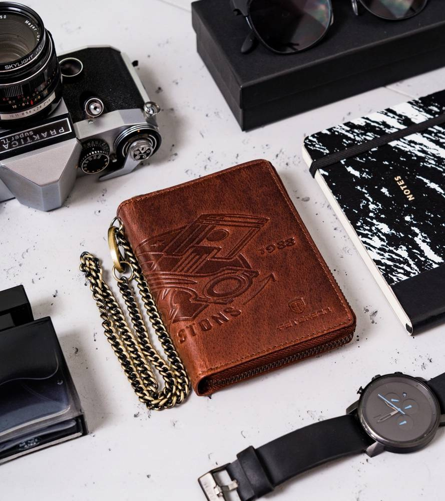 - Prezent dla fana motocykli | Na powierzchni portfela umieszczono wytłoczony wzór silnika, który prezentuje się naprawdę świetnie!