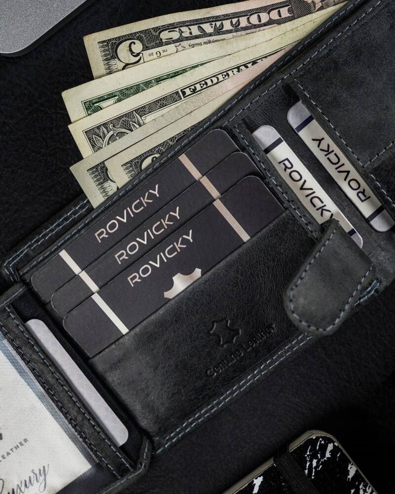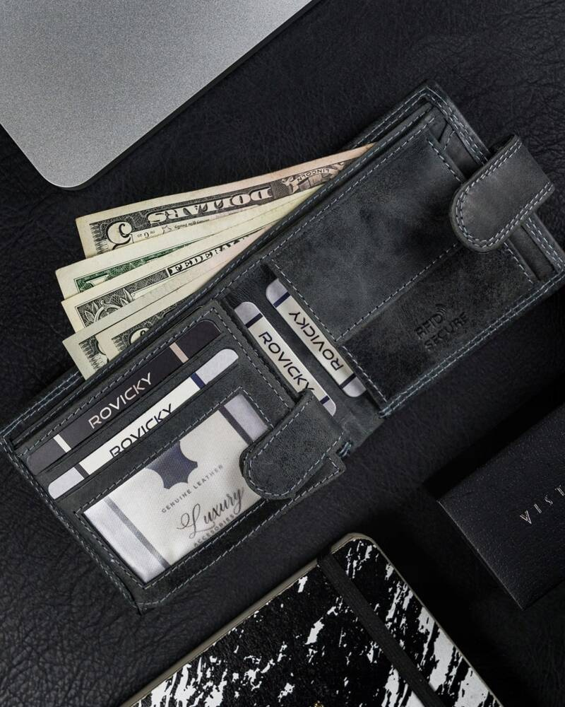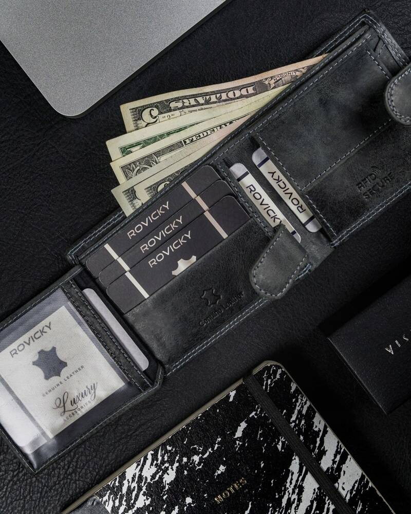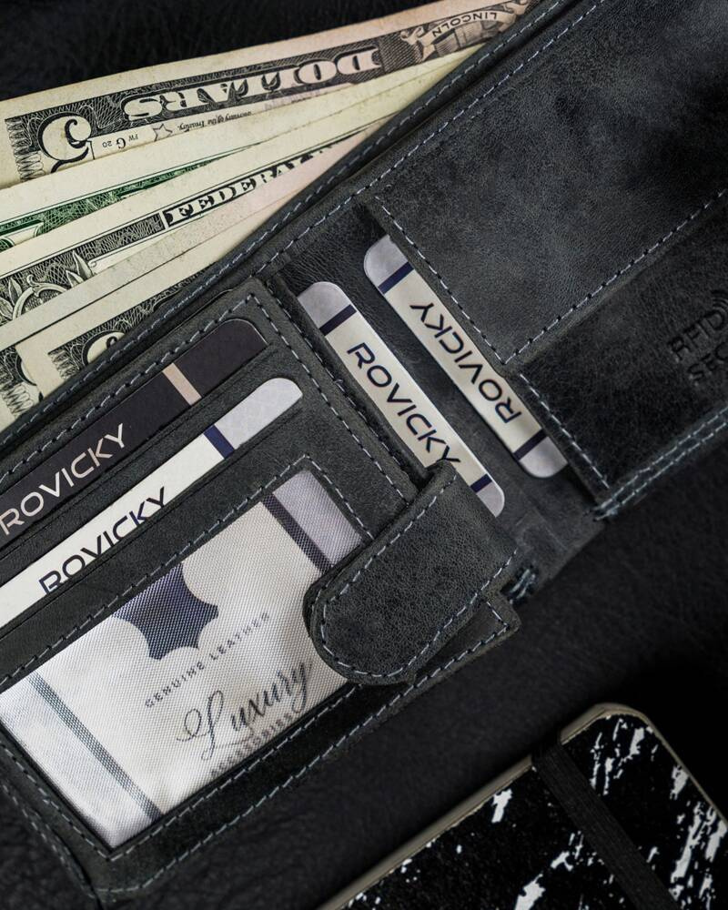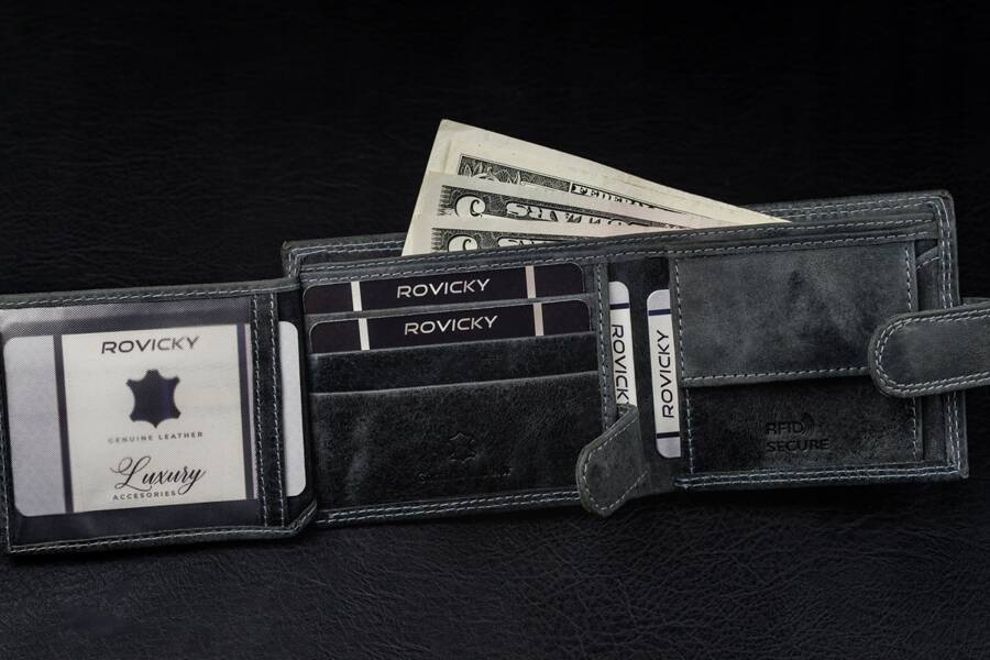 - Bezpieczeństwo | Wyposażony w technologie RFID, która chroni portfel przed złodziejami używającymi czytniku do kart;