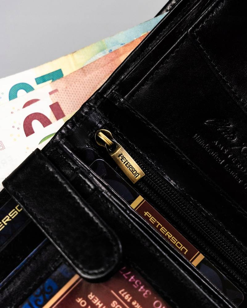 - banknoty schowasz do 3 szerokich kieszeni. Dwie z nich są otwarte, trzecia zapinana na suwak.