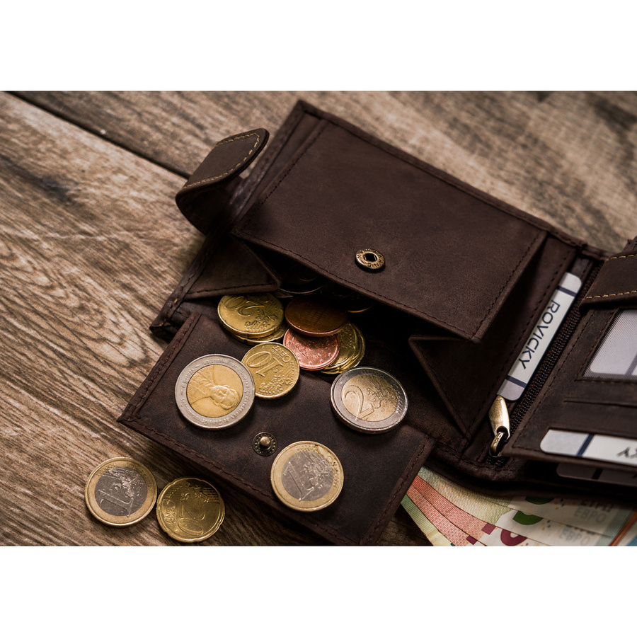 W kieszeniach na banknoty i monety zmieścisz satysfakcjonującą ilość gotówki.
