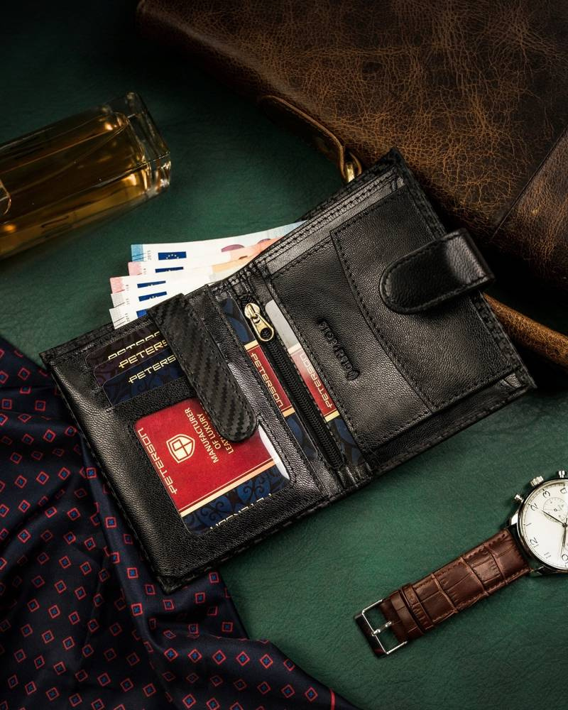 Skórzany portfel męski w orientacji pionowej zamykany na zatrzask — Peterson
