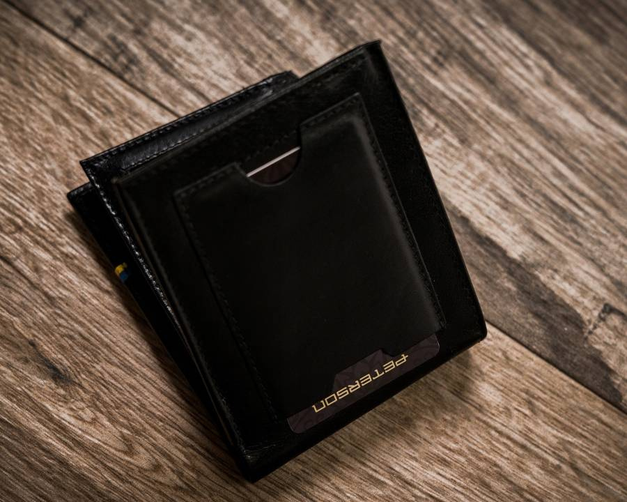Skórzany portfel męski w orientacji poziomej z systemem RFID — Peterson