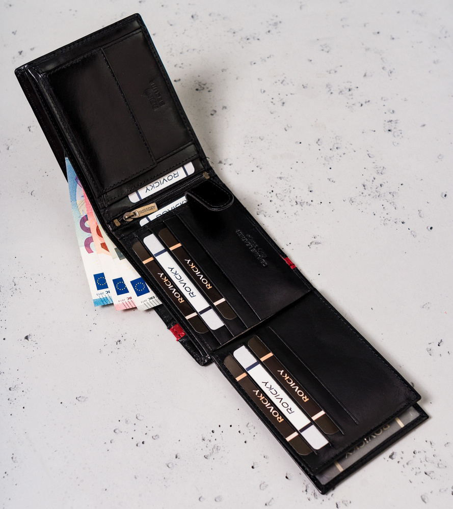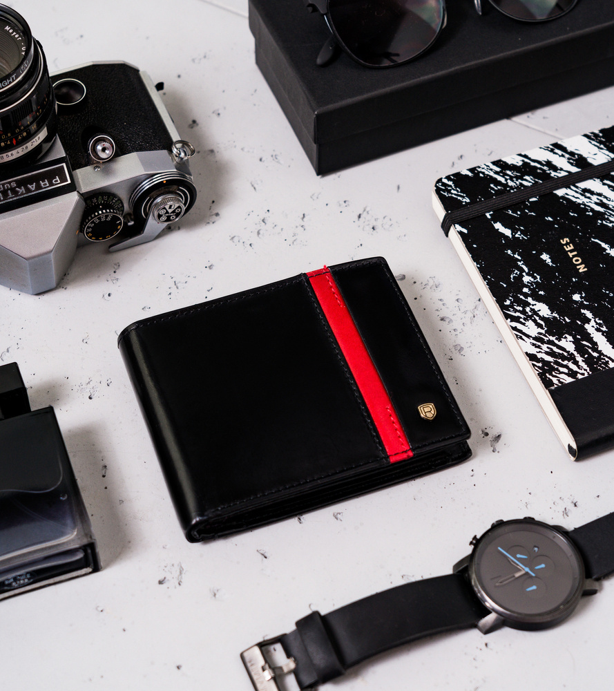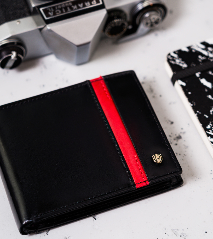 Skórzany portfel męski z czerwonym paskiem – Rovicky