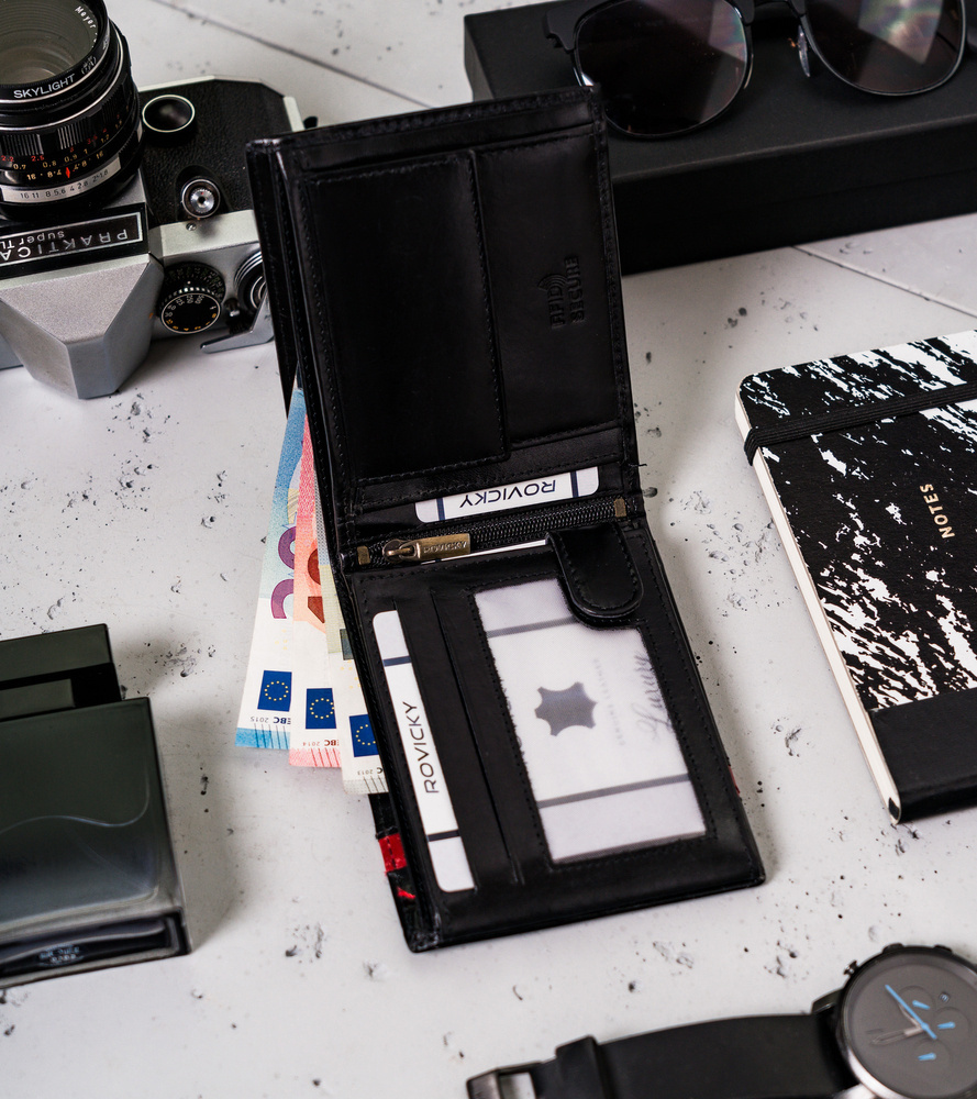 - Bezpieczeństwo na najwyższym poziomie – wspomniana technologia RFID chroni portfel przed złodziejami, używającymi czytników do kart. W każdej chwili, w zatłoczonym autobusie, ktoś może zeskanować dane z Twojej karty debetowej lub kredytowej, a Ty nawet się nie zorientujesz! Na szczęście portfel ma wkładkę, która zapobiega tym przykrym sytuacjom
