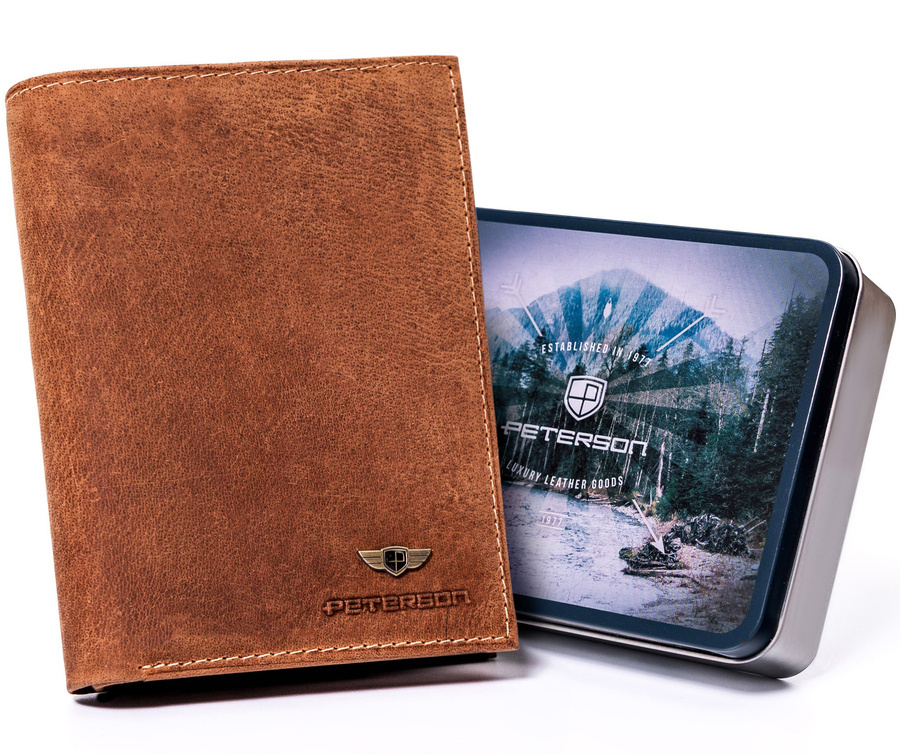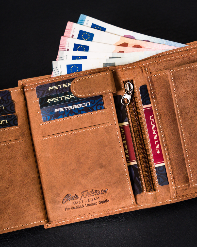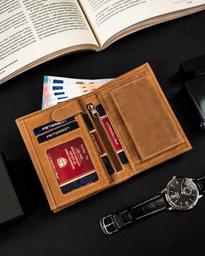 Skórzany portfel męski z kieszonką na suwak – Peterson