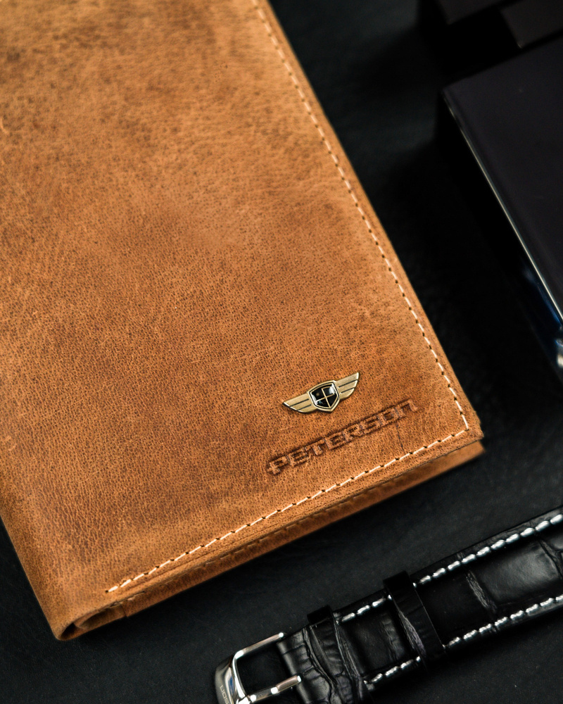 Skórzany portfel męski z kieszonką na suwak — Peterson