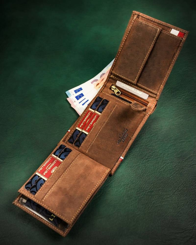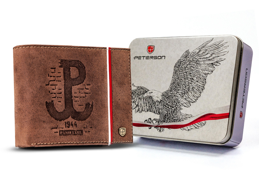 Skórzany portfel męski z patriotycznym wzorem - PetersonSkórzany portfel męski z patriotycznym wzorem – Peterson