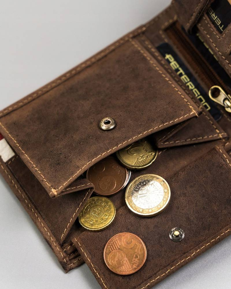 W kieszeniach na banknoty i monety zmieścisz satysfakcjonującą ilość gotówki.