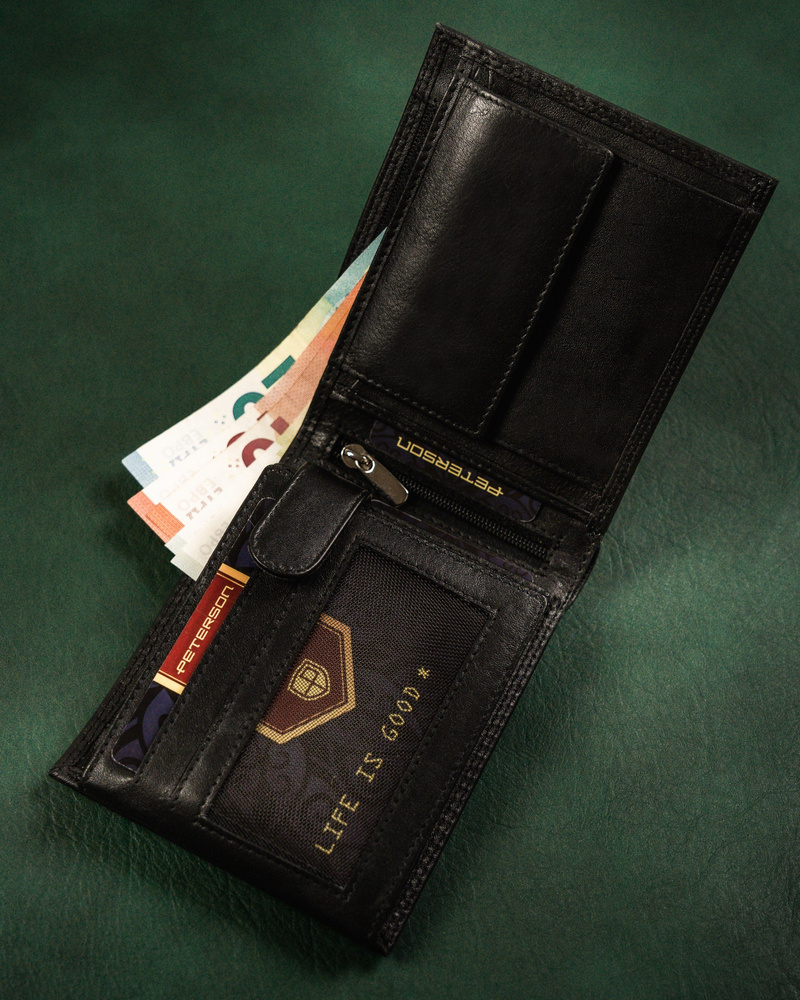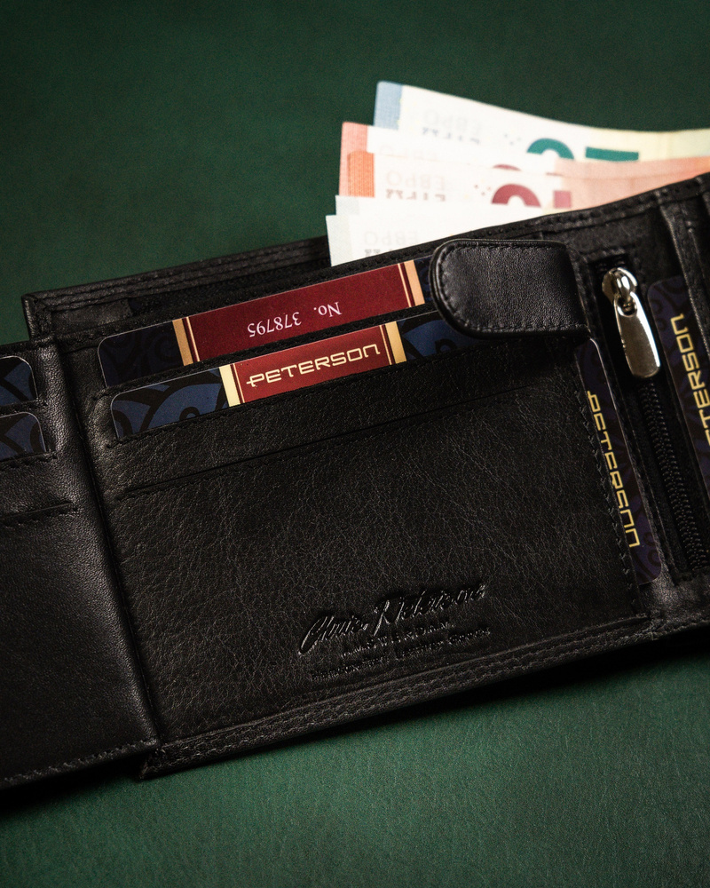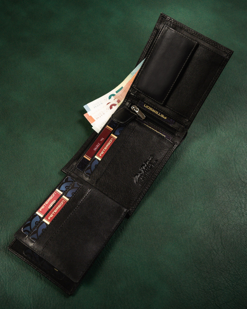 Skórzany portfel męski z zabezpieczeniem RFID Protect - PetersonSkórzany portfel męski z zabezpieczeniem RFID Protect – Peterson
