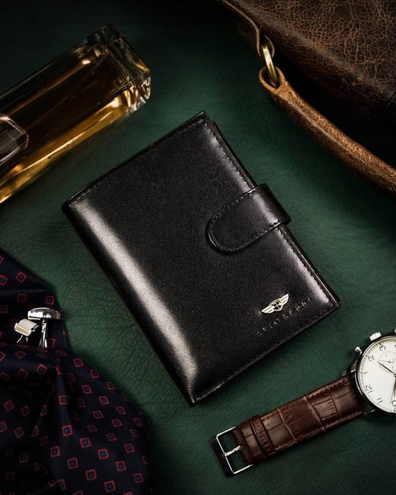 - Ponadczasowy fason dla Panów w każdym wieku | Portfel o klasycznej stylistyce. Model w orientacji pionowej z zapięciem zewnętrznym;