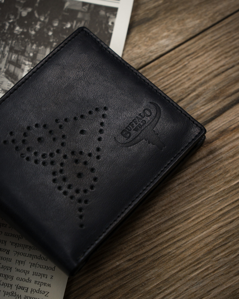 Skórzany portfel męski ze zdobionym frontem — Buffalo WildSkórzany portfel męski ze zdobionym frontem — Buffalo Wild