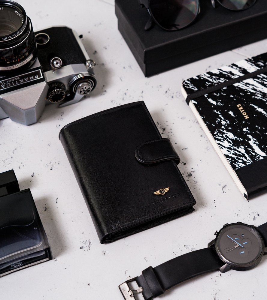 - Ponadczasowy fason dla Panów w każdym wieku | Portfel o klasycznej stylistyce. Model w orientacji pionowej z zapięciem zewnętrznym
