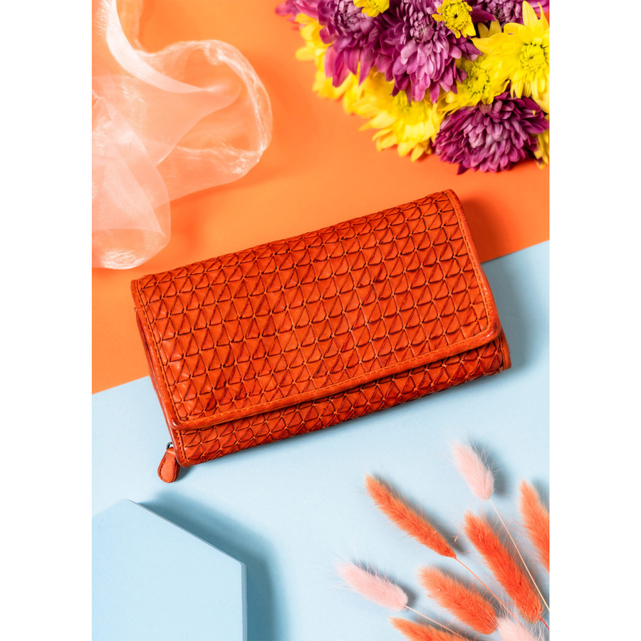Portfel zachwyca swoim oryginalnym, nowoczesnym stylem i wyrazistym czerwonym kolorem, który przyciąga uwagę.