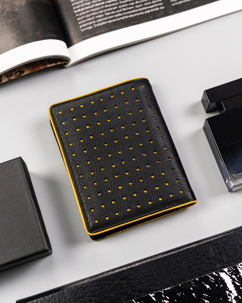- Stylowy portfel o oryginalnym designie | Portfel z ażurowym panelem. Model w orientacji pionowej bez zapięcia zewnętrznego.