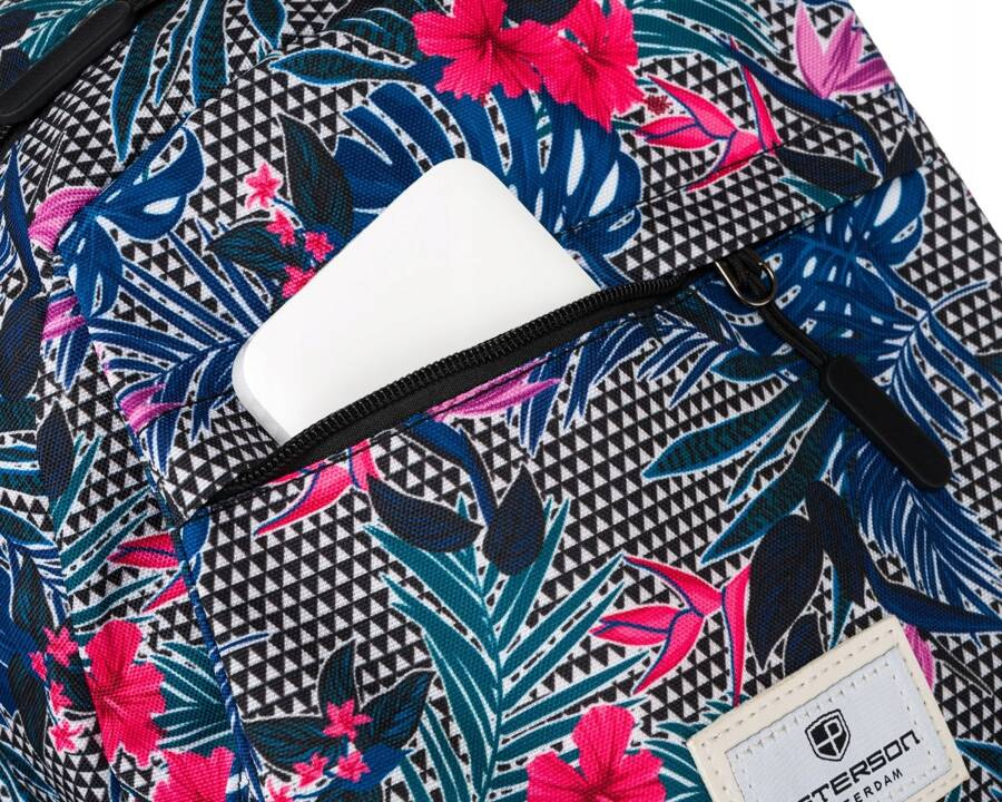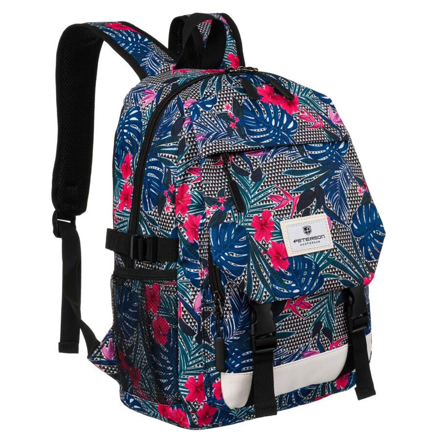 Sportowy plecak szkolny w roślinny wzór z kieszenią na froncie – Peterson