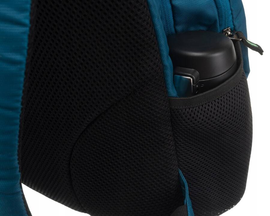 Na jednym z boków plecaka jest elastyczna siateczkowa kieszeń idealna na bidon, butelkę wody czy parasol.