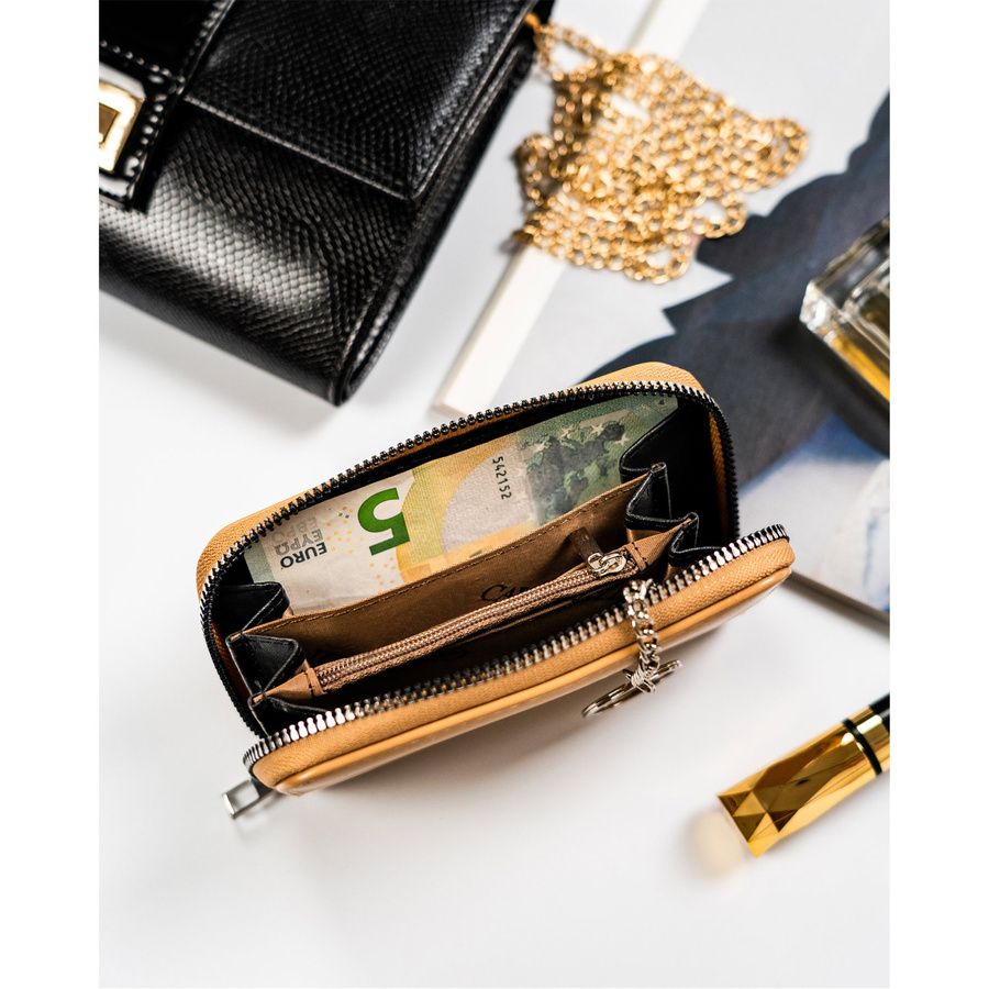 - 1 kieszeń na bilon: zamykana na zamek błyskawiczny, zapewnia bezpieczeństwo i łatwy dostęp do monet;
