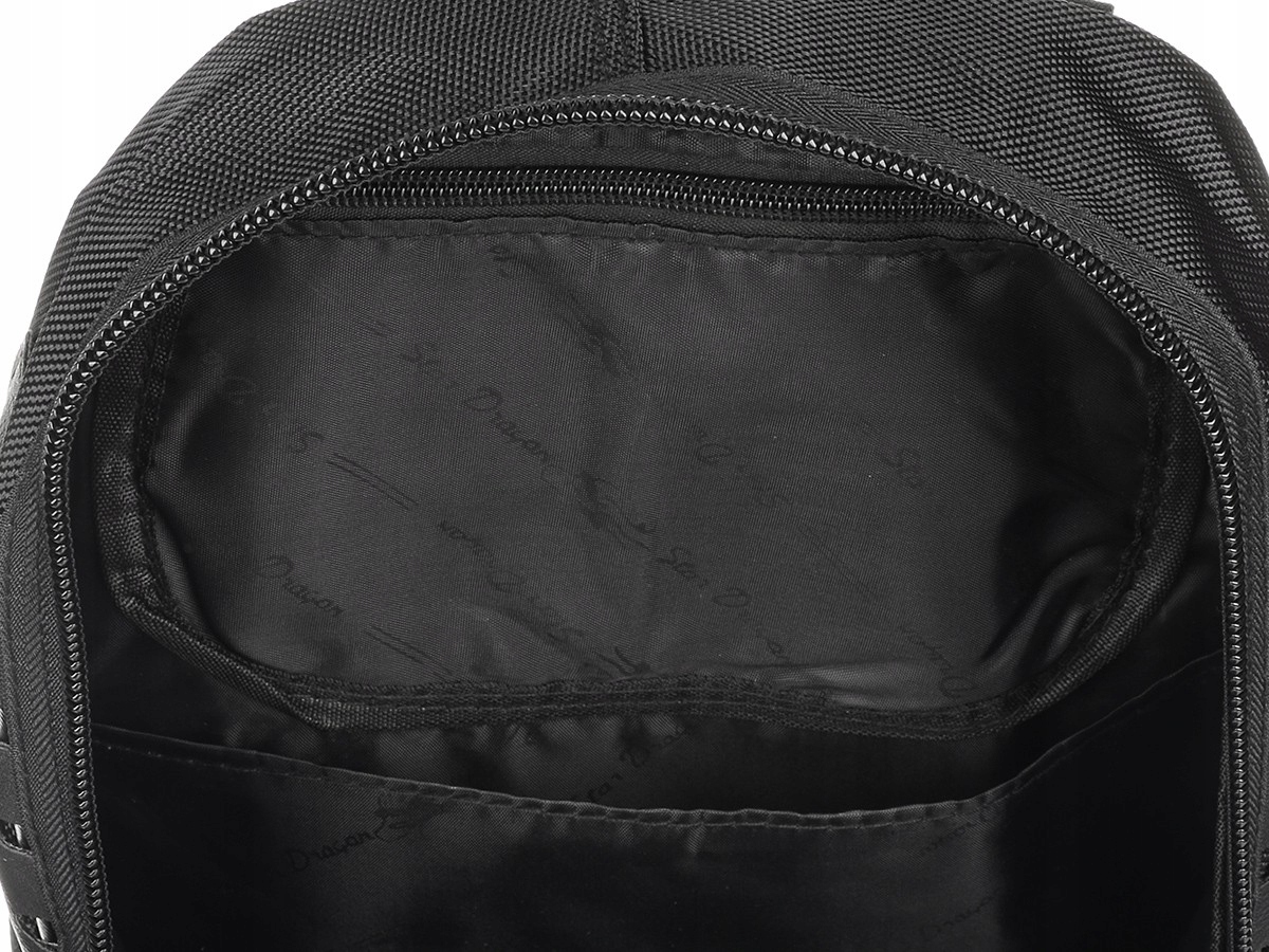• Kieszenie wewnętrzne: W PRZEDNIEJ KOMORZE: – 2 nieduże, otwarte, na telefon, portfel, dokumenty i inne drobne przedmioty; jedna z nich jest z siateczki; W TYLNEJ KOMORZE: – 1 duża, otwarta, mieszcząca format A4; – 1 mała, zasuwana;