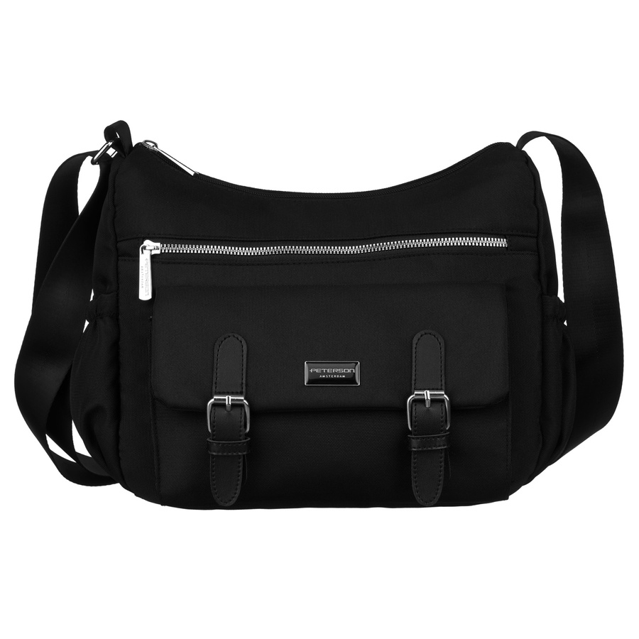 Stylowa, materiałowa torebka damska z zewnętrzną kieszenią – Peterson