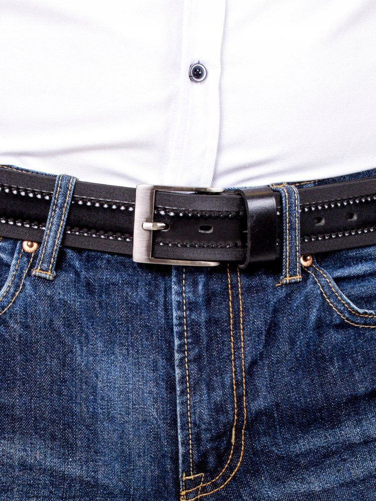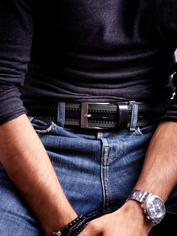 Stylowy pasek męski z delikatną fakturą i skórzanym lampasem – Rovicky