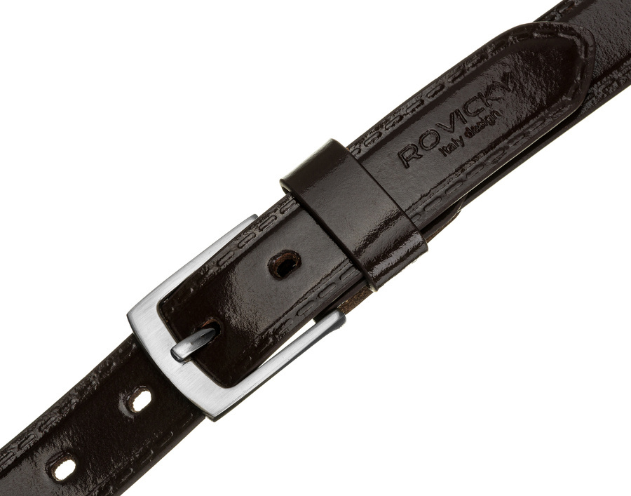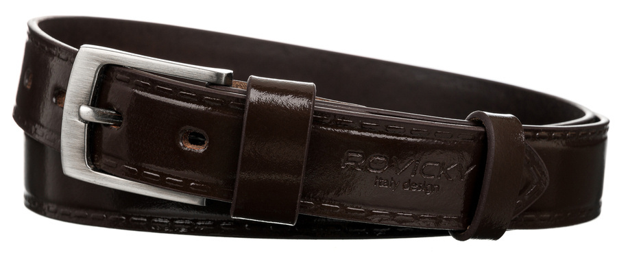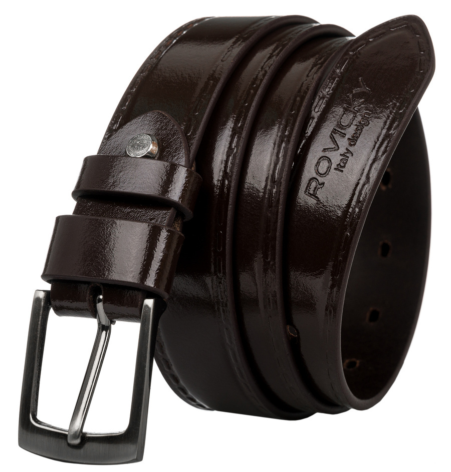 Stylowy pasek męski z lakierowanej skóry naturalnej licowej – Rovicky