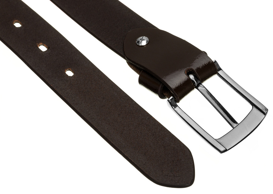 Stylowy pasek męski z lakierowanej skóry naturalnej licowej — Rovicky