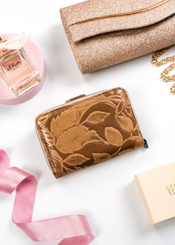 - Połączenie skór najwyższej jakości | Portfel został uszyty ze specjalnych wyselekcjonowanych skór. Środek portfela został obszyty matową skórą naturalną, natomiast z zewnątrz znajduje się skóra ekologiczna ze ślicznym roślinnym wzorem;