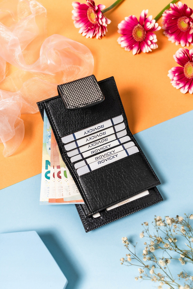 - 13 miejsc na karty płatnicze, wizytówki i dokumenty o standardowym formacie. Jedna z przegródek jest przezroczysta i świetnie nada się na fotografię.
