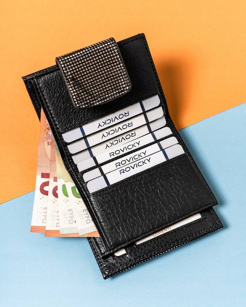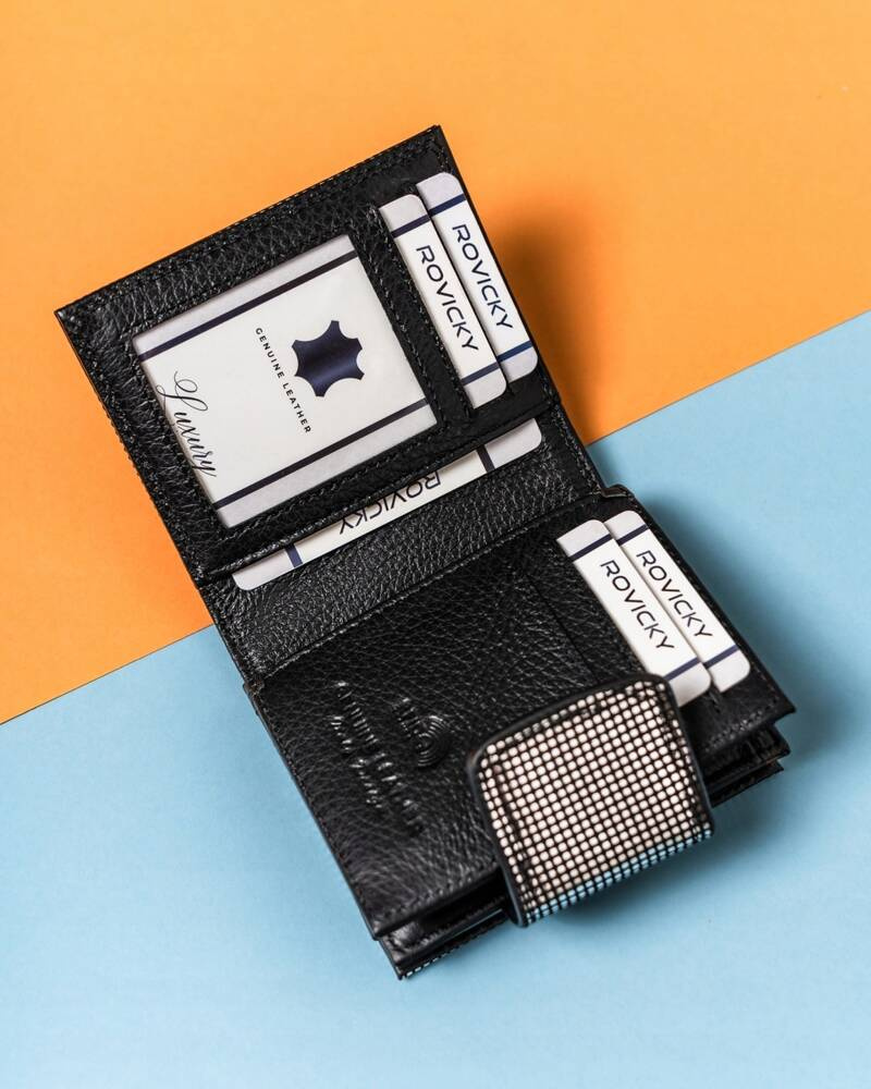 Stylowy, skórzany portfel damski na zatrzask i bigiel – Lorenti