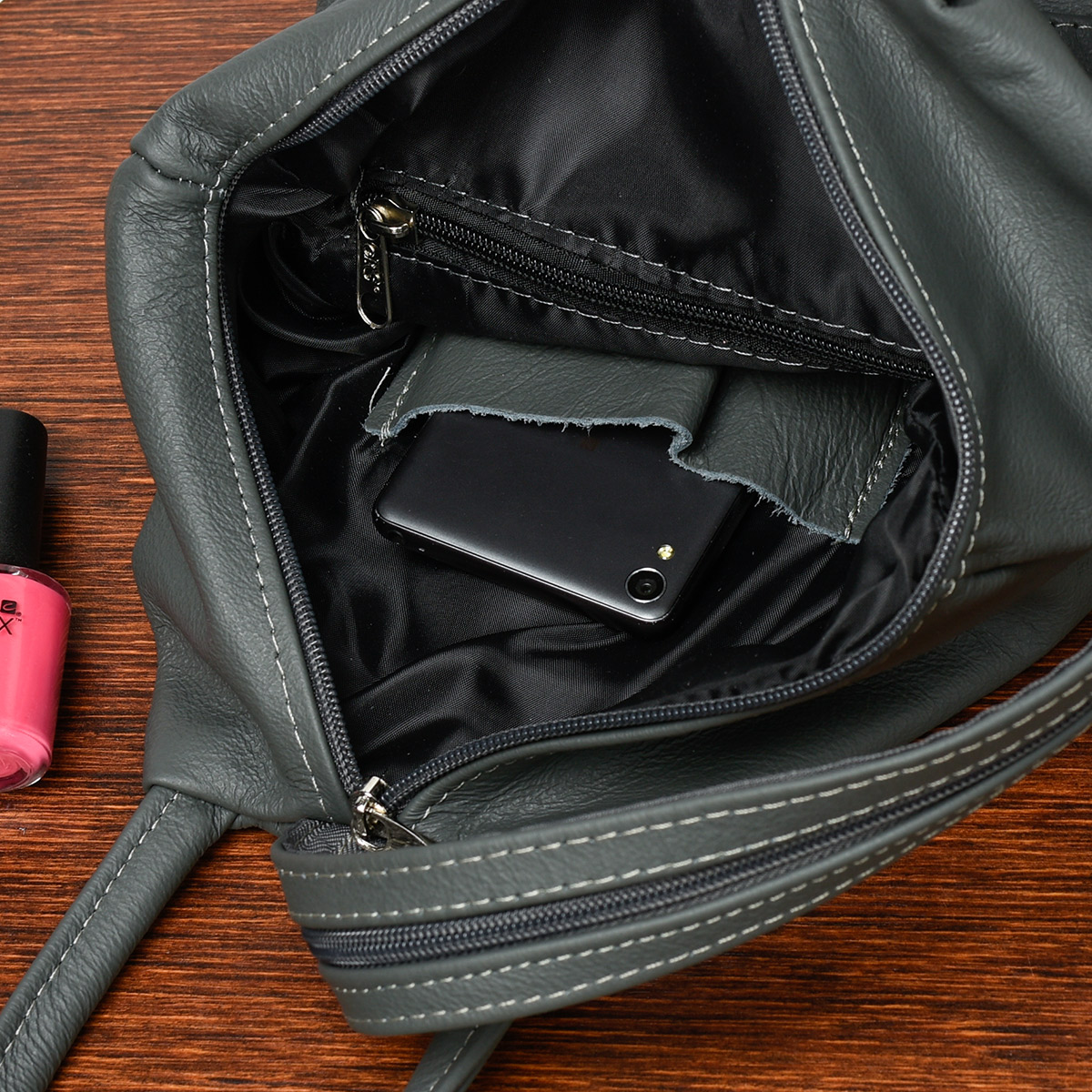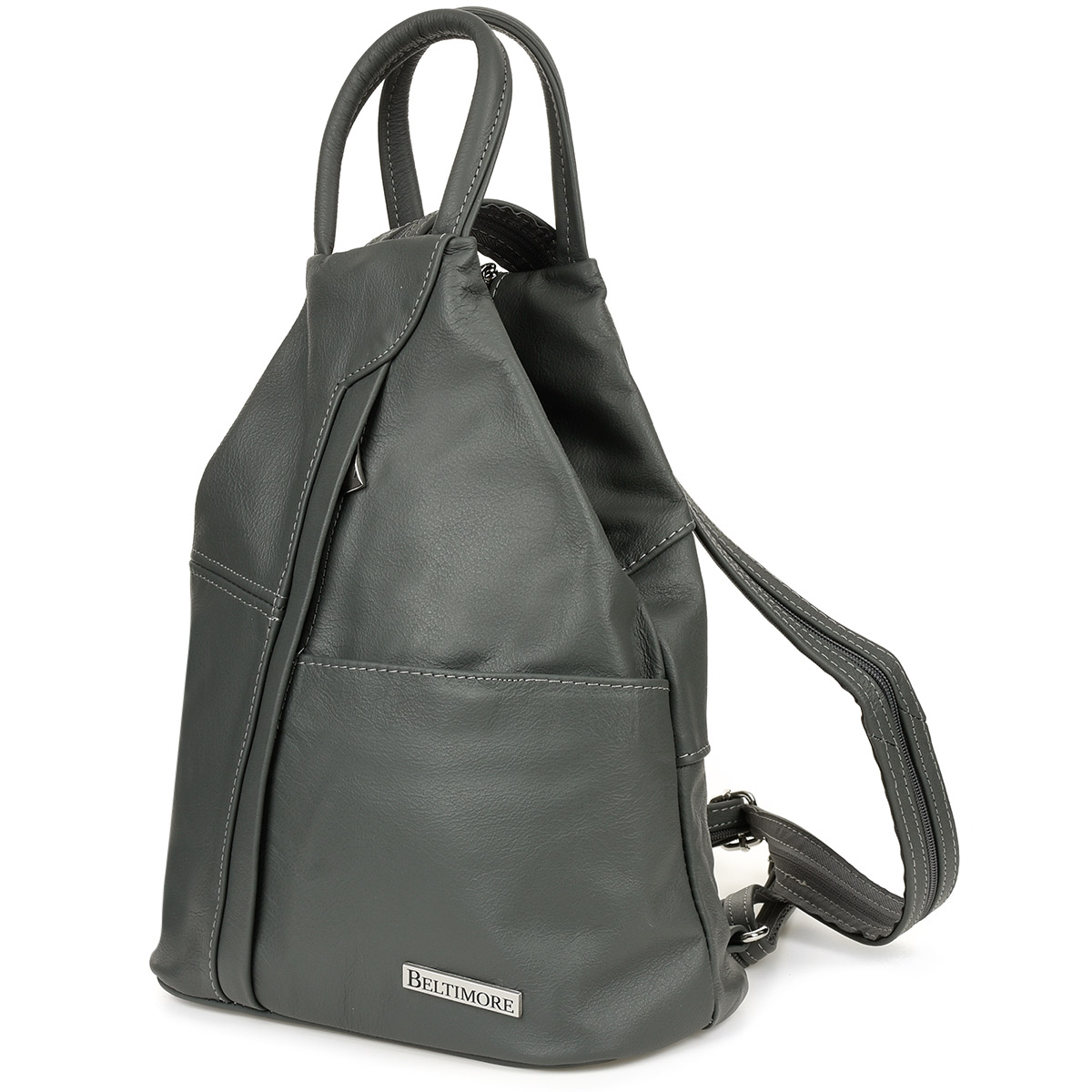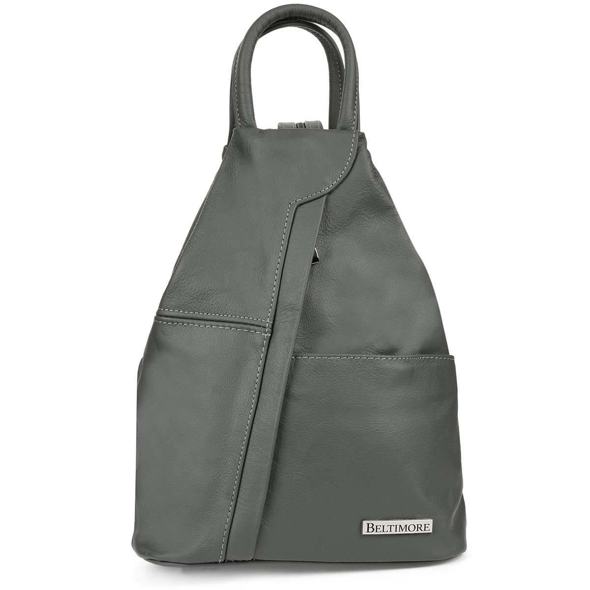 Szary Beltimore Plecak Damski Skórzany Trójkąt Pojemny Q60