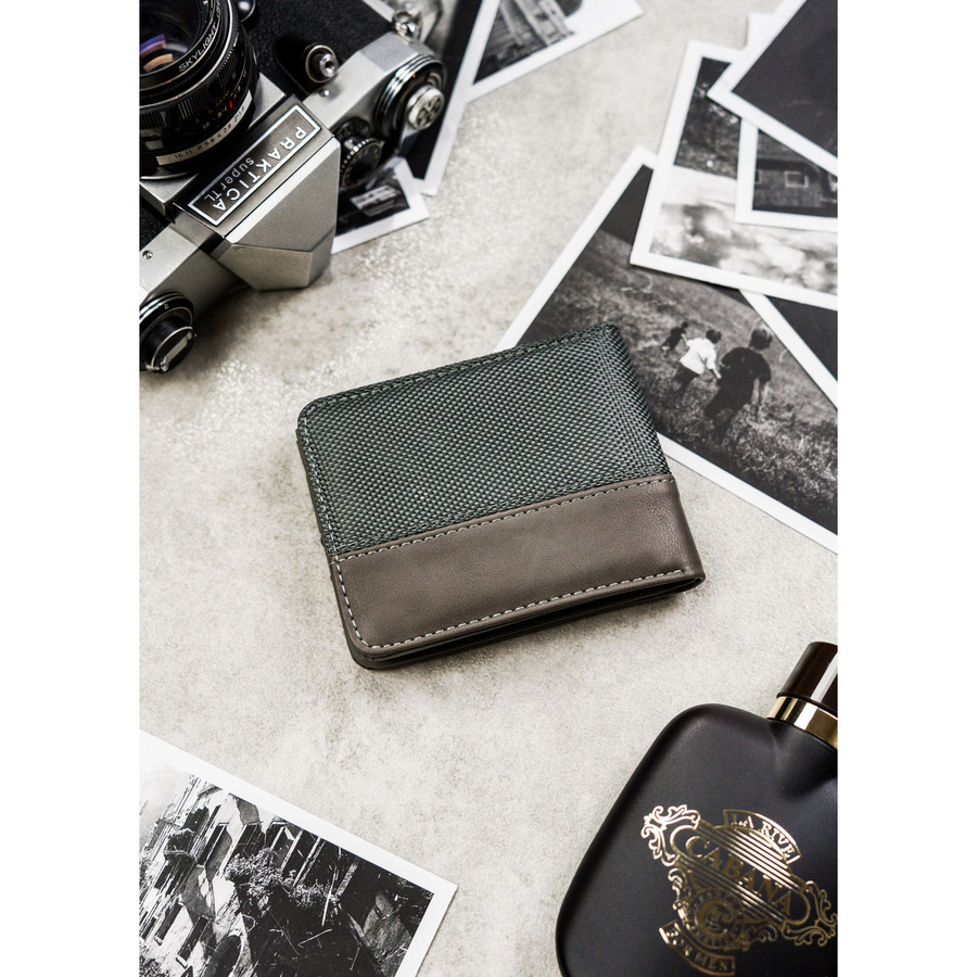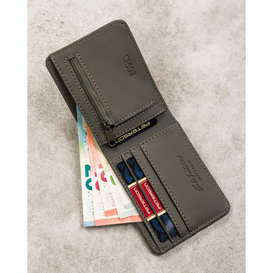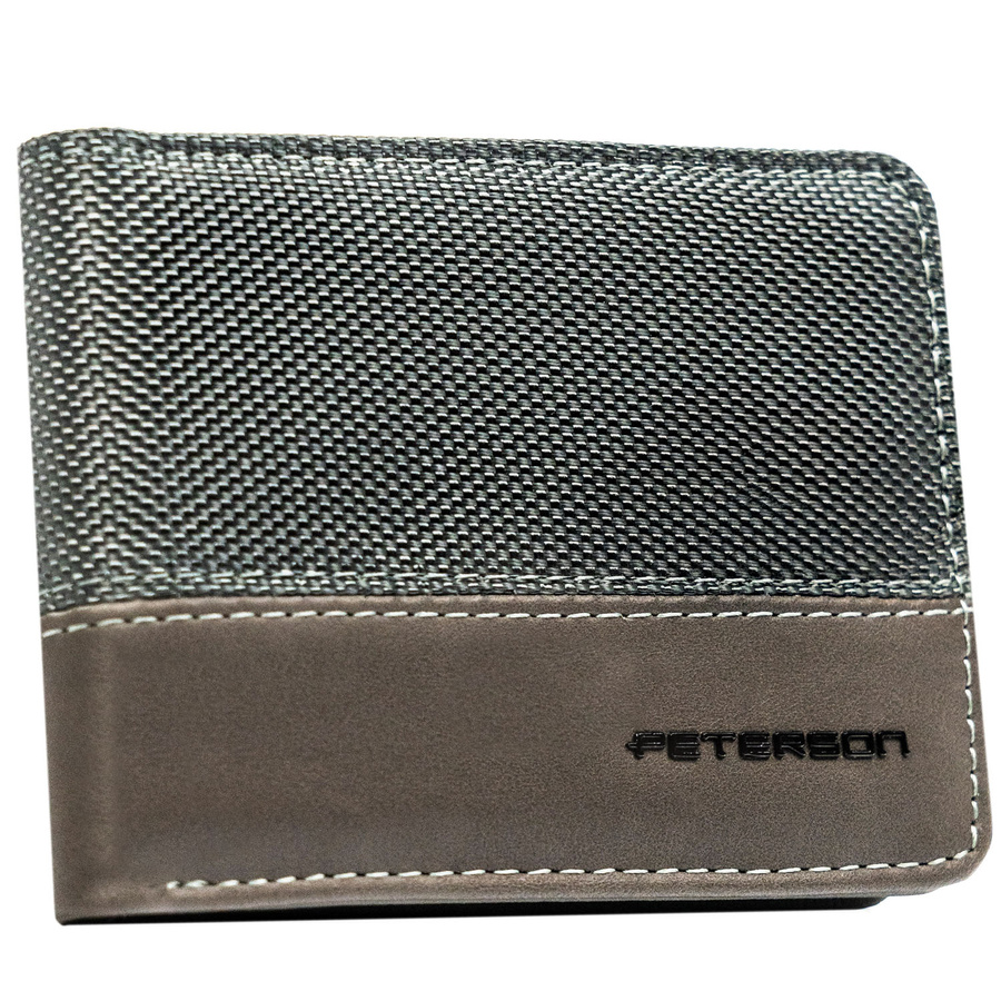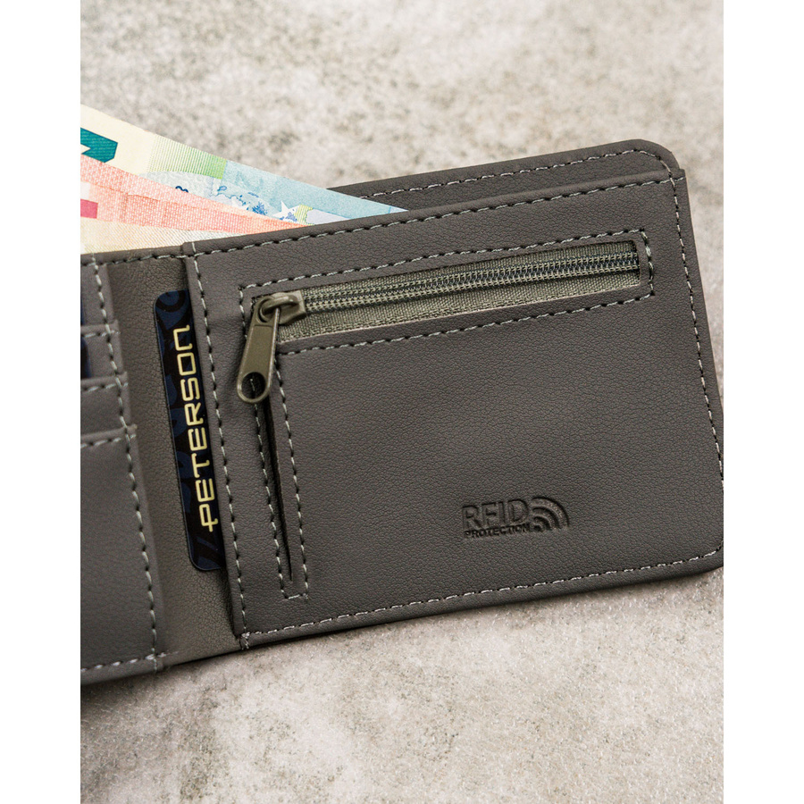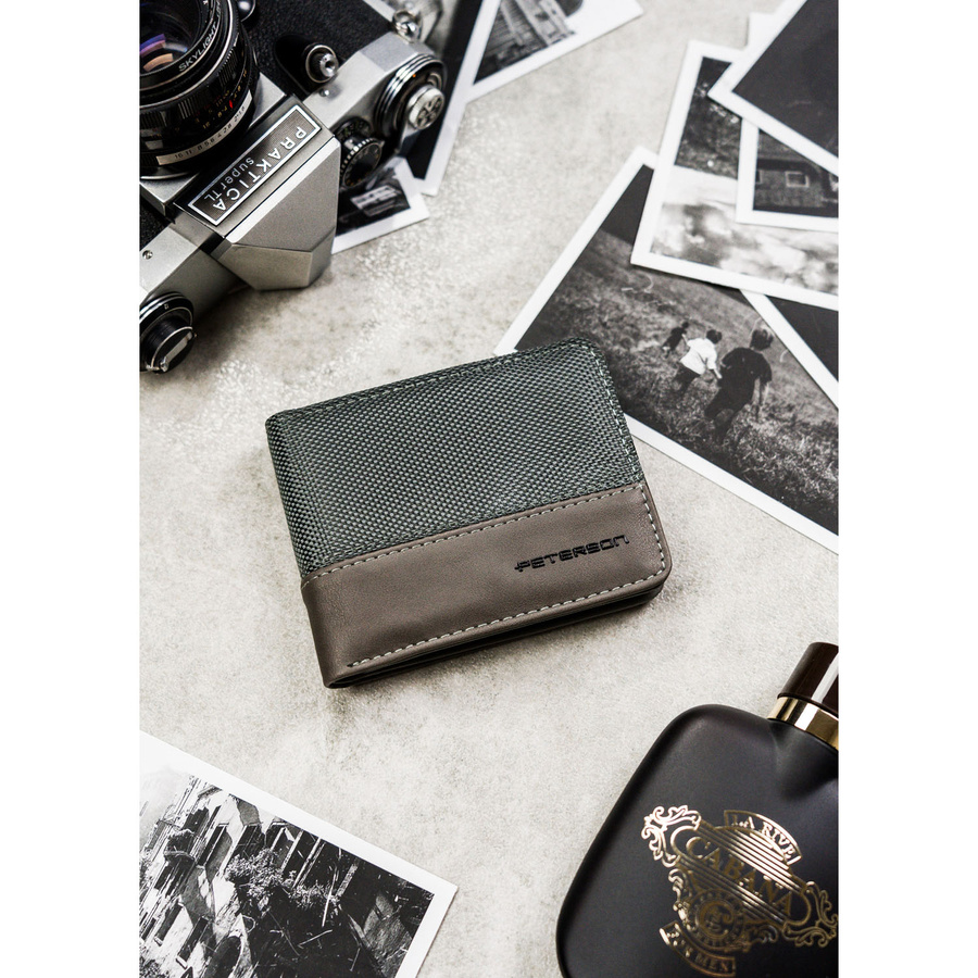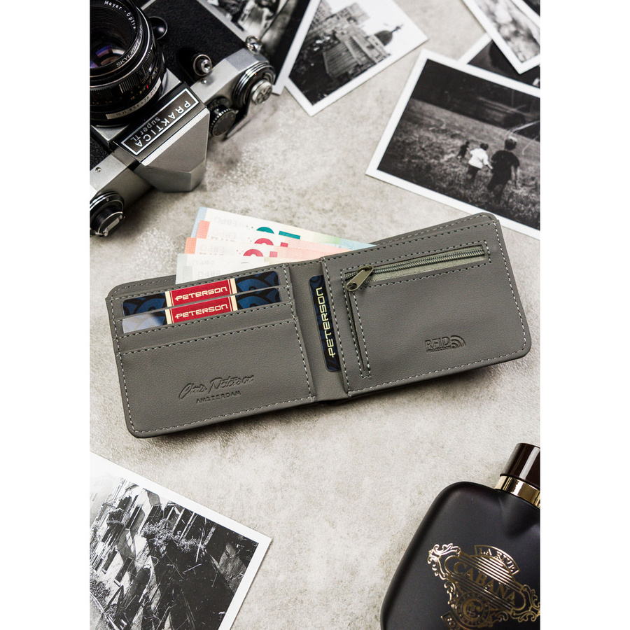 Szary portfel męski bez zapięcia zewnętrznego z systemem RFID – Peterson