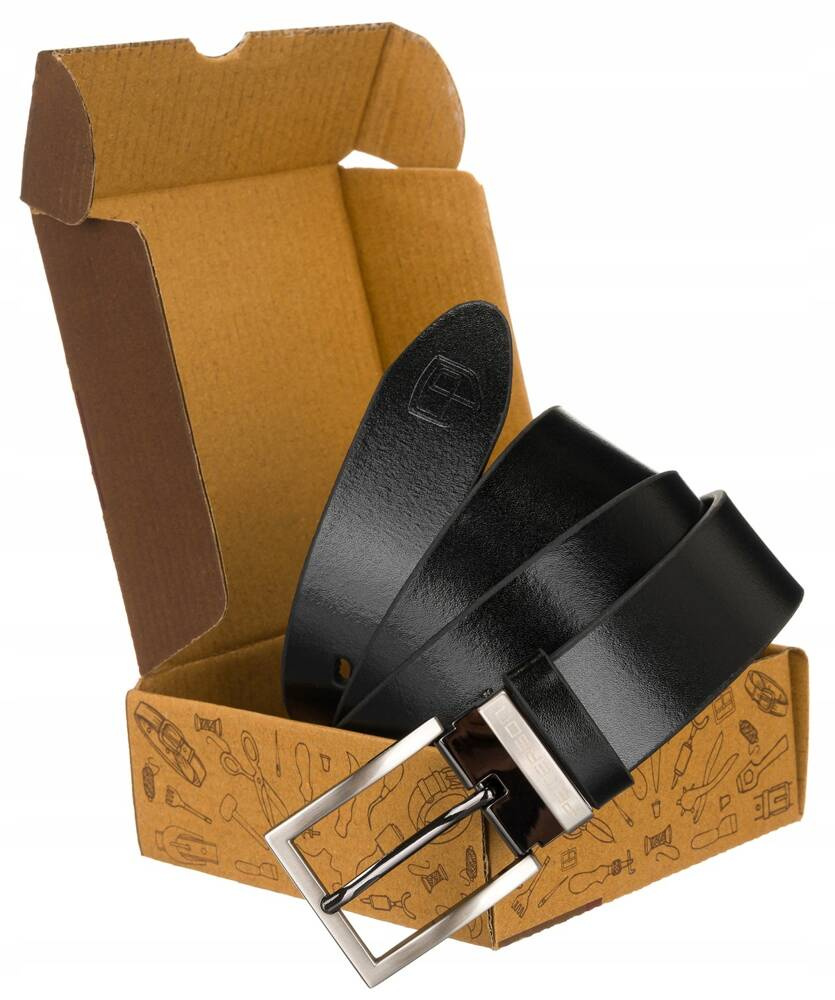 Każdy pasek zapakowany jest w firmowe pudełko z twardej tektury.