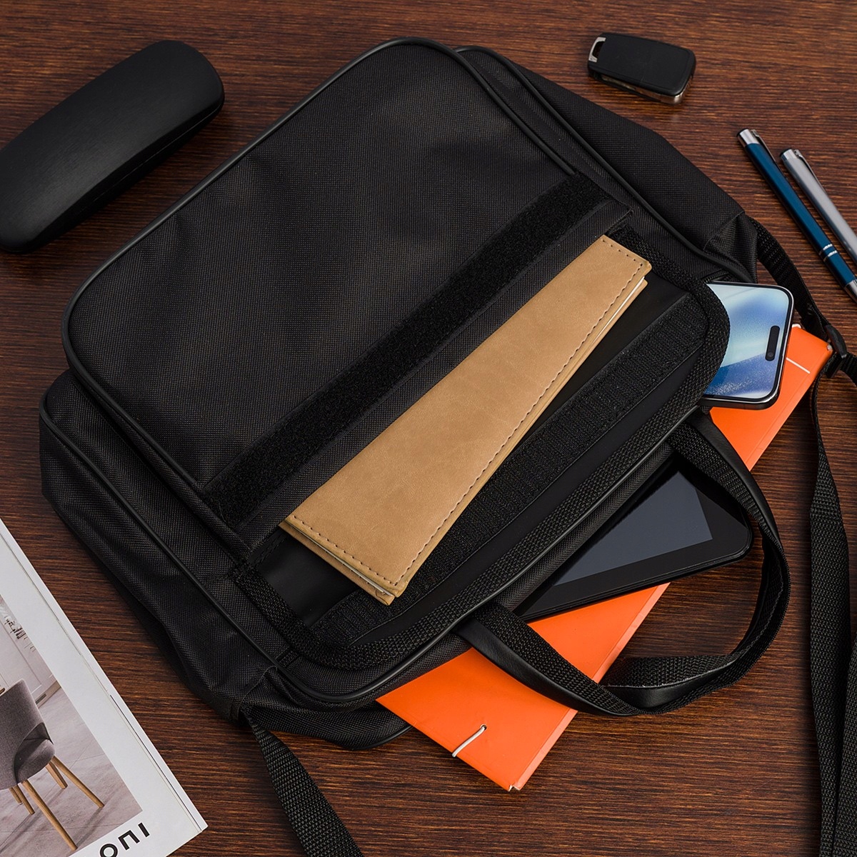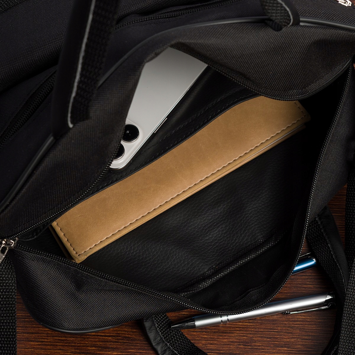 – torba męska dwukomorowa swobodnie pomieszczą teczki/zeszyty formatu A4.