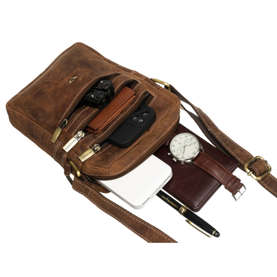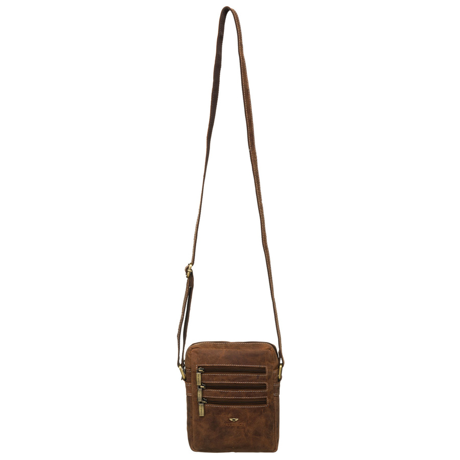 Torba męska na ramię w brązowym kolorze z suwakami na froncie - PetersonTorba męska na ramię w brązowym kolorze z suwakami na froncie – Peterson