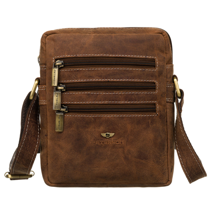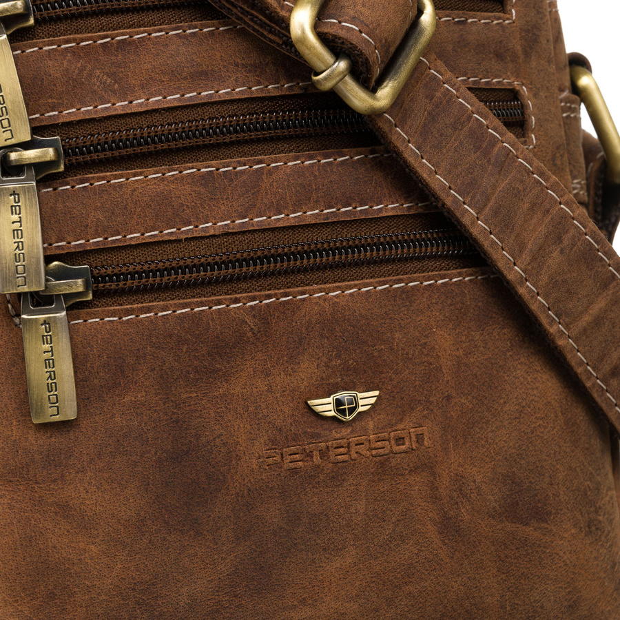 Torba męska na ramię w brązowym kolorze z suwakami na froncie – Peterson