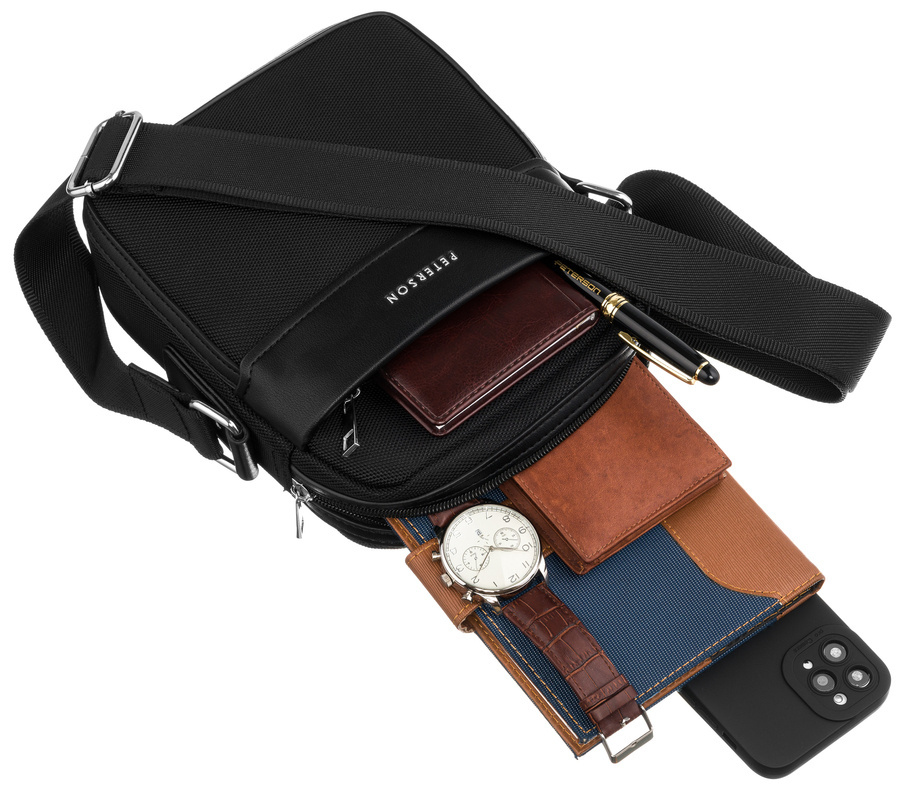 Torba męska na ramię z tkaniny poliuretanowej - PetersonTorba męska na ramię z tkaniny poliuretanowej – Peterson