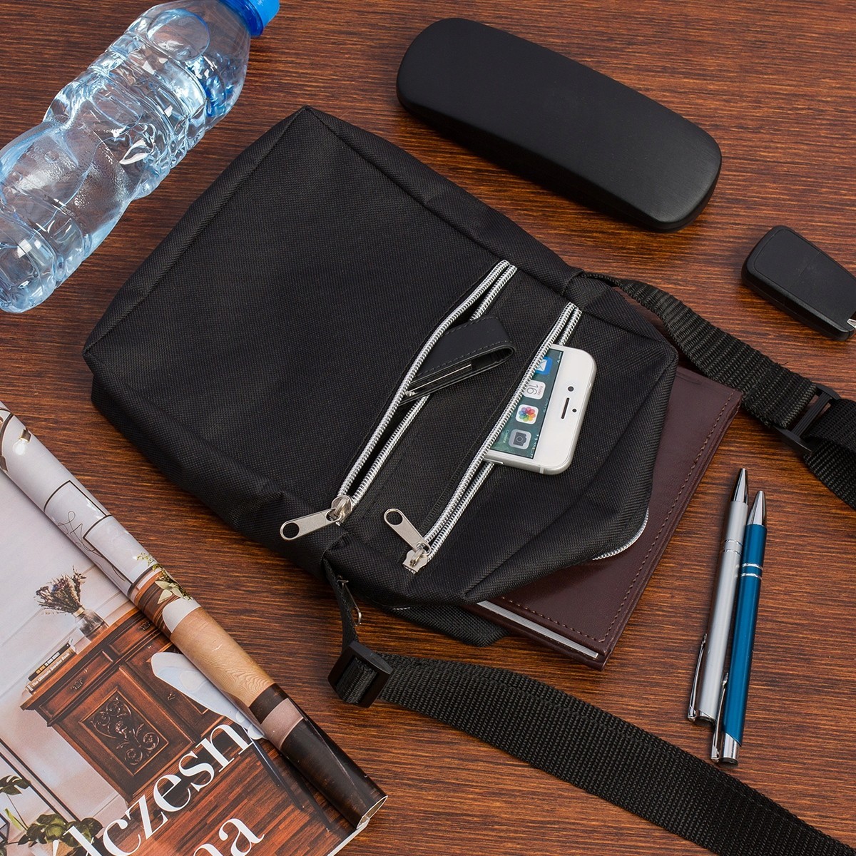 - Świetnie nadaje się do noszenia takich drobiazgów jak pieniądze, dokumenty, portfel, telefon, tablet czy książka( pomieści format A5)