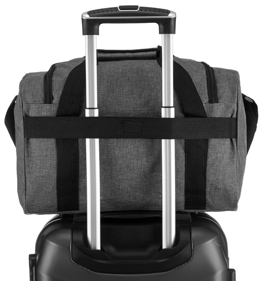 Praktyczne rozwiązanie, które uczyni każdą podróż o wiele przyjemniejszą! Na tylnej ścianie torby znajduje się uchwyt, który zaczepisz o walizkę.