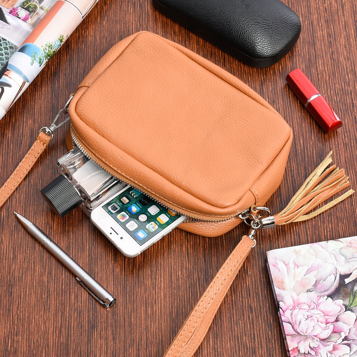 W tej aukcji umożliwiamy zakup torebki w kolorze camelowym.