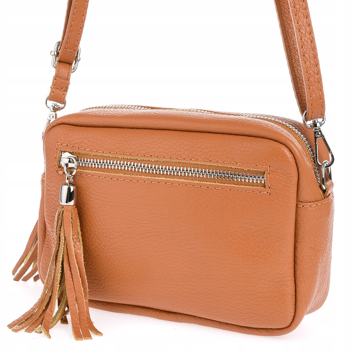 Torebka damska listonoszka skórzana z frędzlem