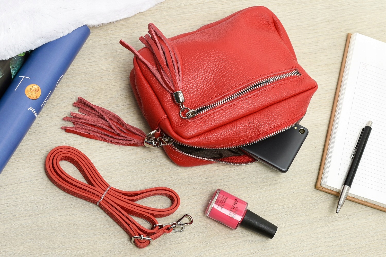 Rewelacyjna, mała, zgrabna, damska listonoszka, wykonana we Włoszech z naturalnej skóry licowej