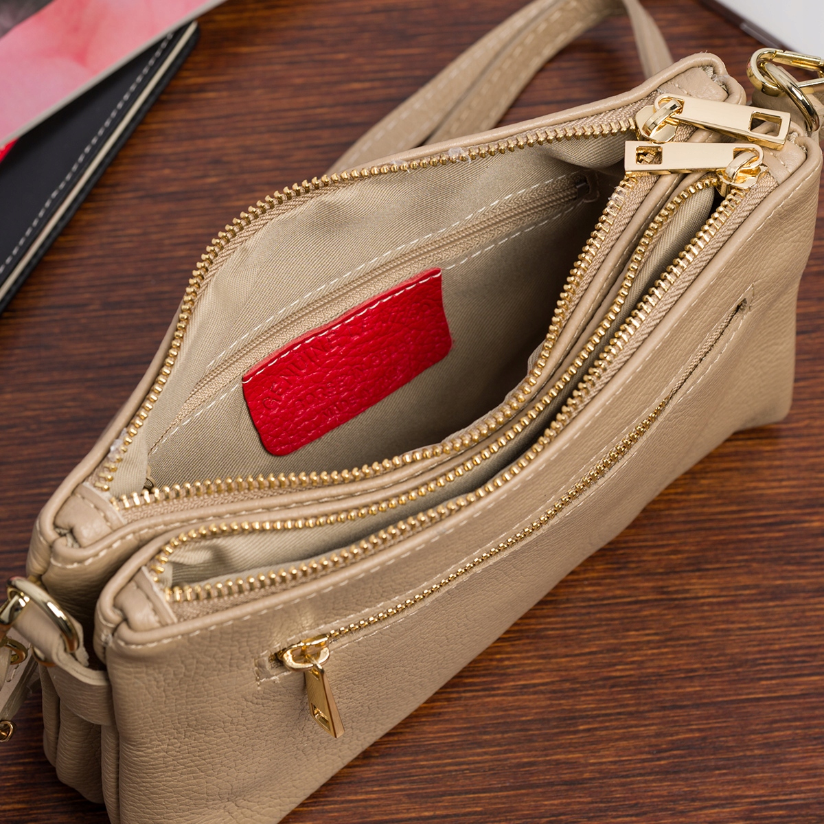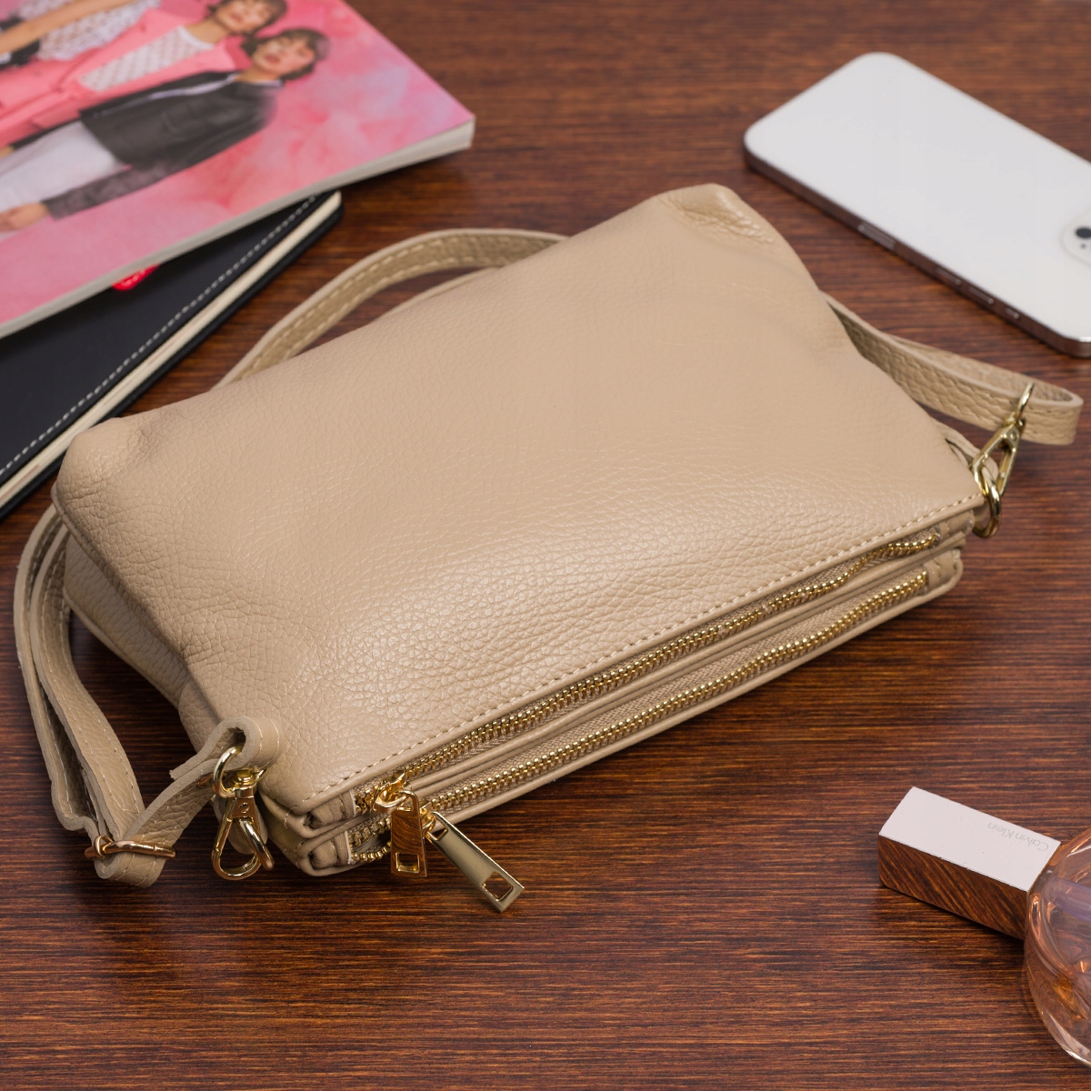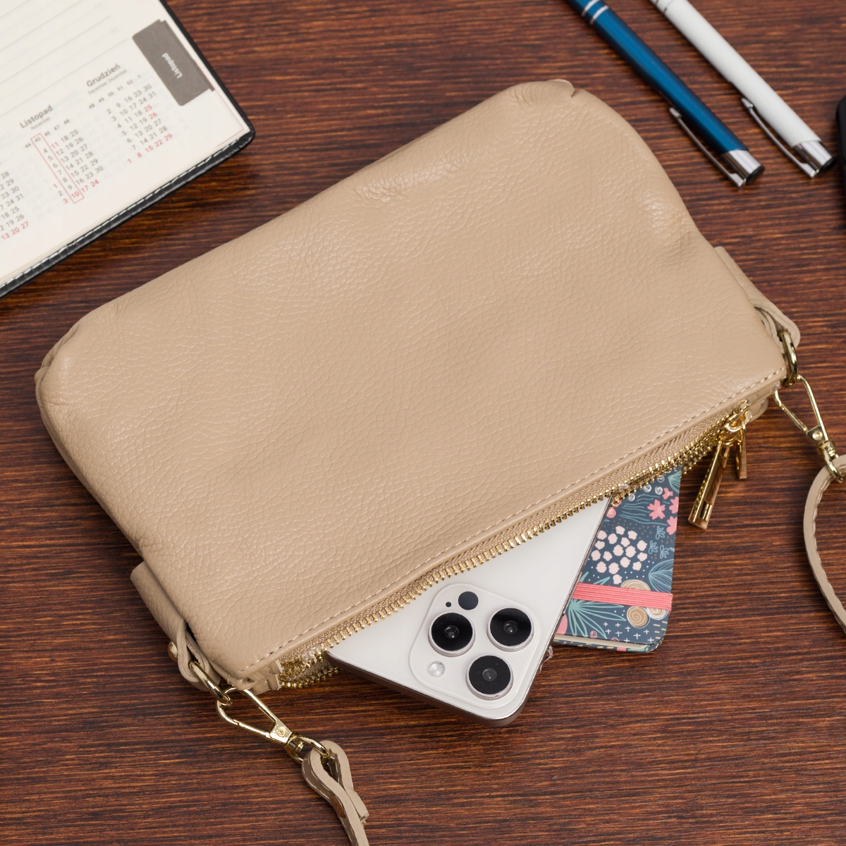 Torebka damska mała wizytowa dwukomorowa miękka skórzana listonoszka