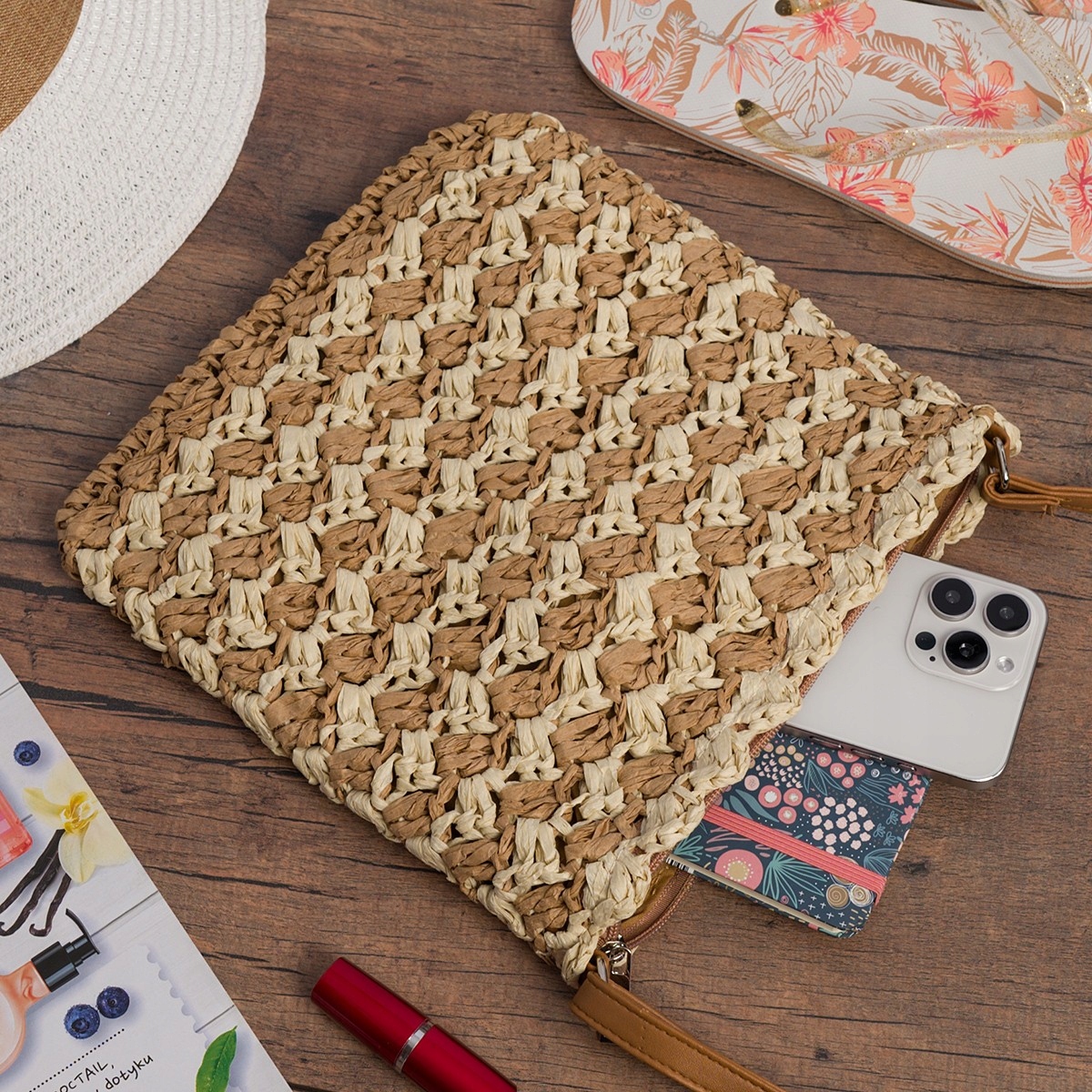 Torebka damska na lato na ramię solidna plecionka listonoszka