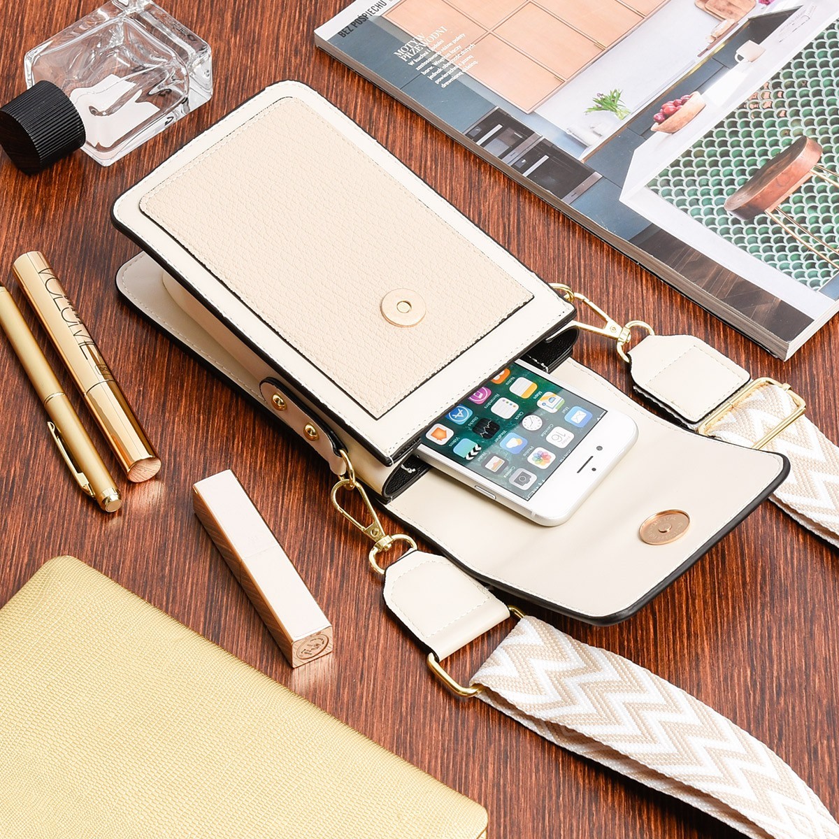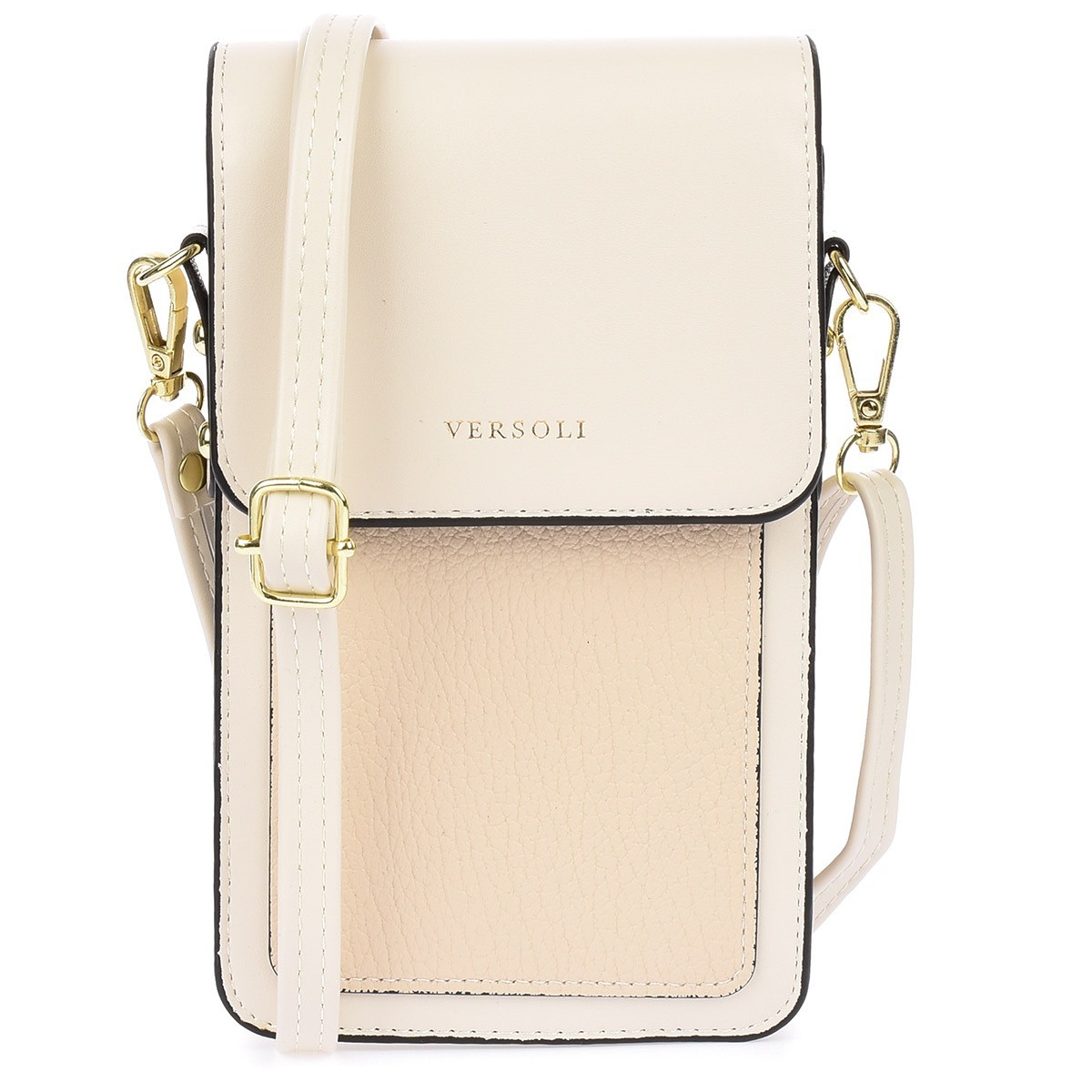 Torebka damska na telefon mini listonoszka raportówka na ramię ecru ekoskóra POR-T-20