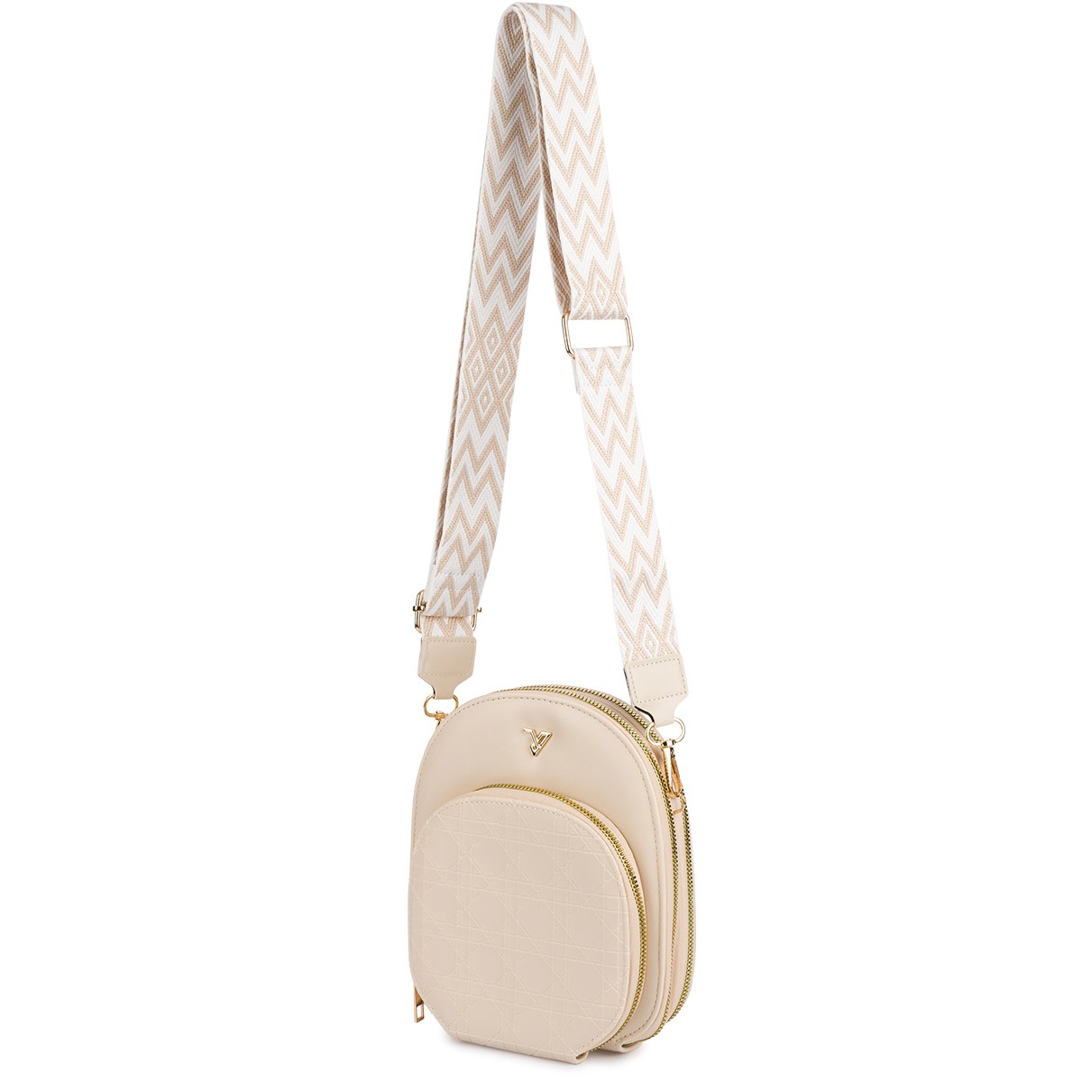 Prezentowana jest torebka w kolorze beżowym.