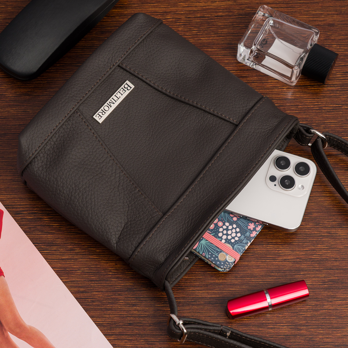 Elegancka Czekoladowa Torebka Listonoszka skórzana Beltimore® – Klasyka i Funkcjonalność w Jednym